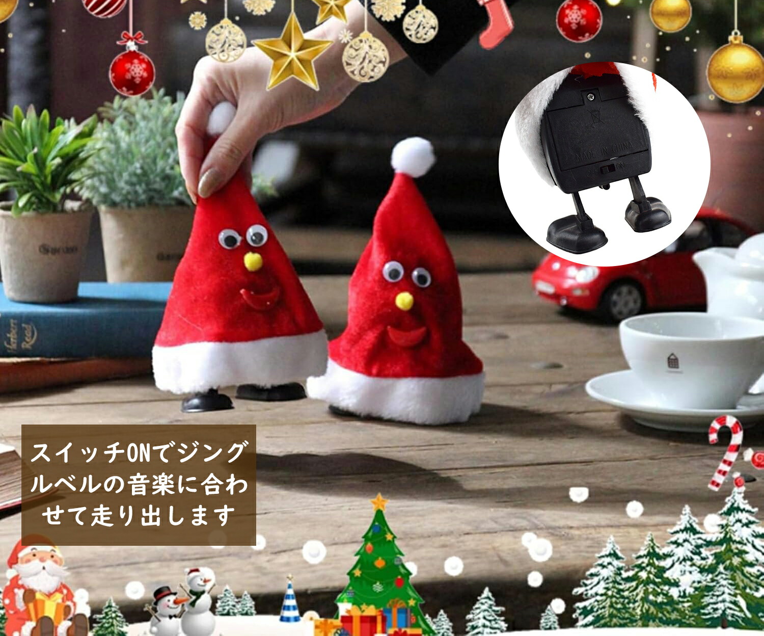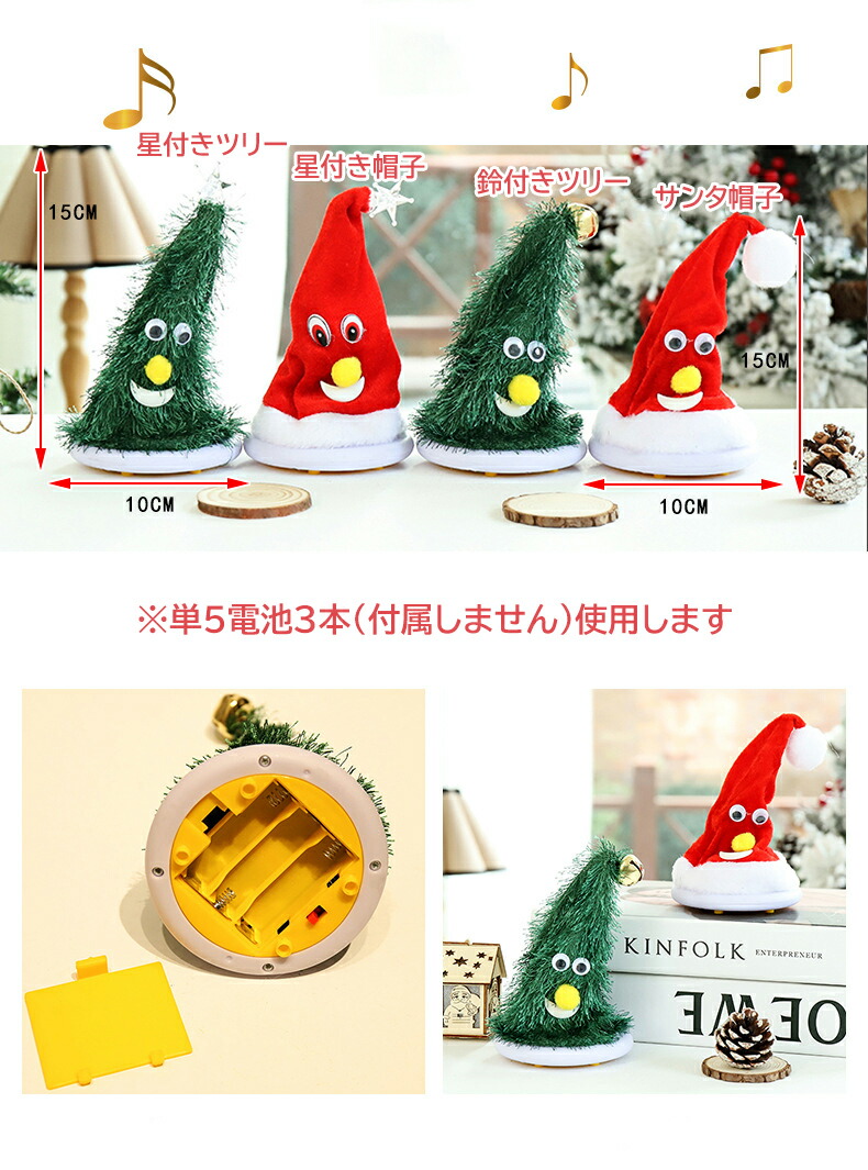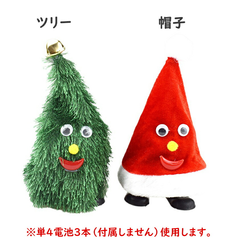 ダンシングツリー クリスマス 飾り ク ツリー 帽子 ツリー&帽子 星付きツリー 星付き帽子 鈴付きツリー サンタ帽子 1個 各1個