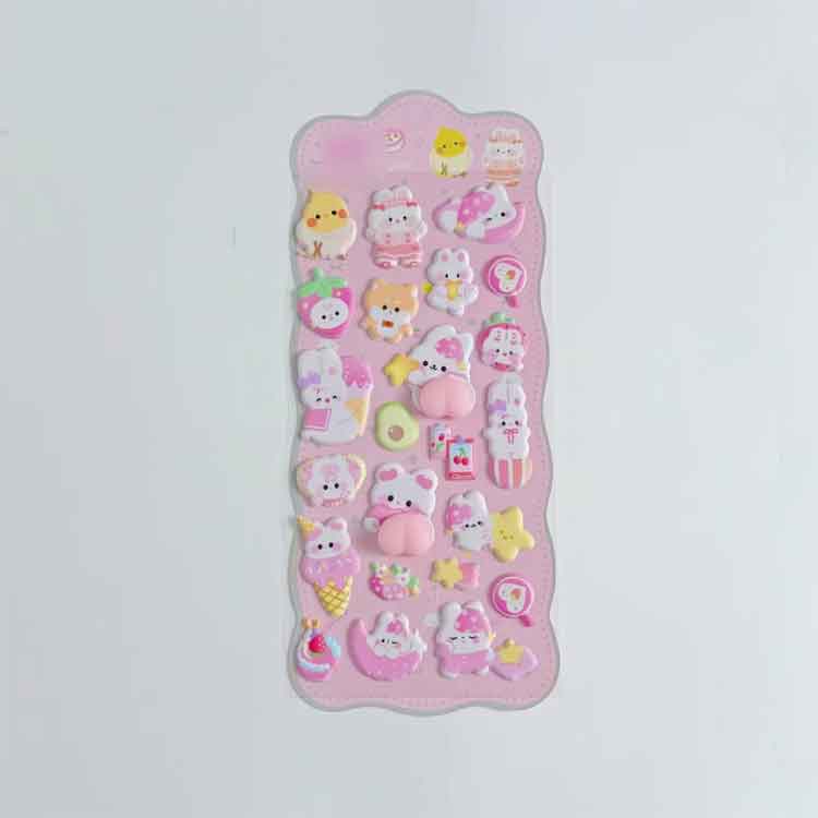 【立体的で超かわいい動物デザイン】うさぎ、くまなど、みんなが大好きな人気キャラクターでご用意。ふわふわマシュマロのような質感とキラキラカラフルな色合いで、見ているだけで笑顔になれる可愛さ。従来の平らなシールとは一味も二味も違う、存在感抜群のデコレーションが実現します。