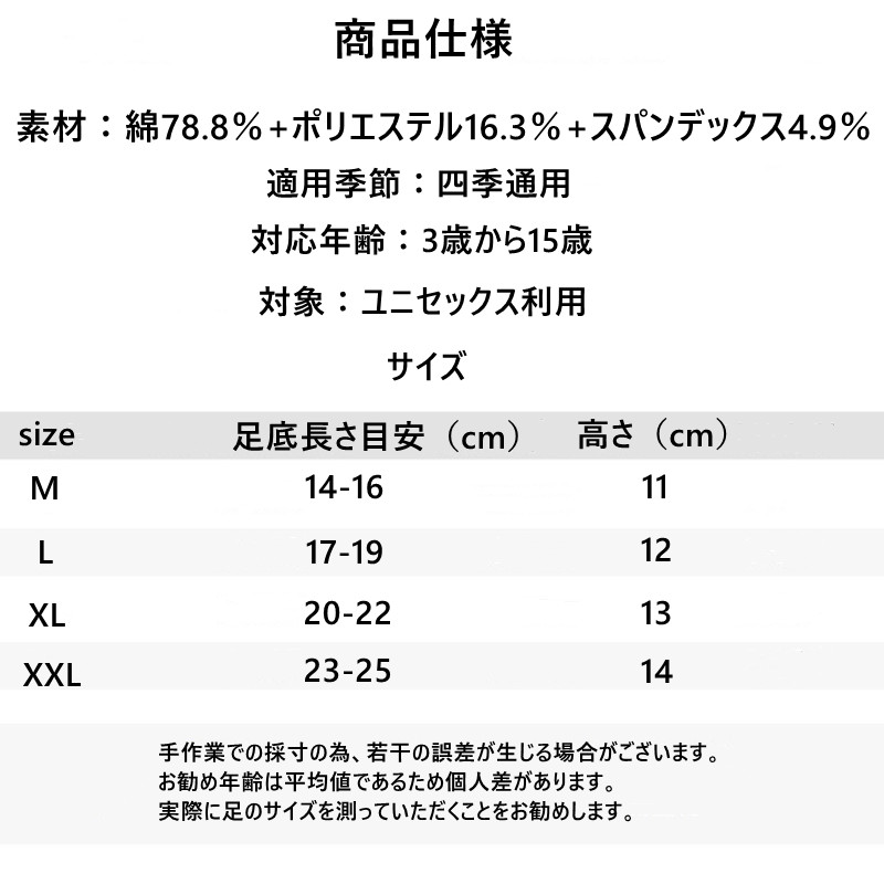 M(足サイズ14-16cm) | L(足サイズ17-19cm) | XL(足サイズ20-22cm) | XXL(足サイズ23-25cm)