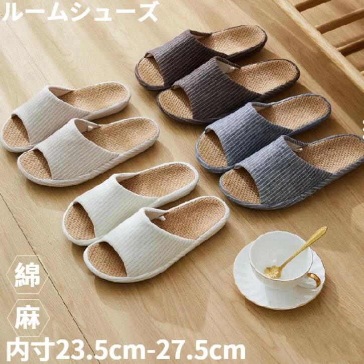 スリッパ 室内 麻 メンズ レディース 内寸22cm~27cm 4色 ルームシューズ 蒸れない 秋 冬 春 夏 コンフォートスリッパ オフホワイト ネイビー ブラウン 消 ベージュ