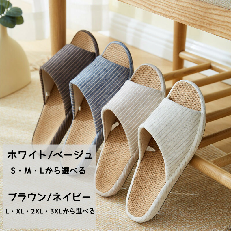 スリッパ 室内 麻 メンズ レディース 生活雑貨 スリッパ ルームシューズ スリッパ 特集 ホワイト ベージュ ブラウン ネイビー S(内寸23.5cm) M(内寸24.5cm) L(内寸25.5cm) XL(内寸26.5cm) 2XL(内寸27.5cm) 3XL(内寸28.5cm)