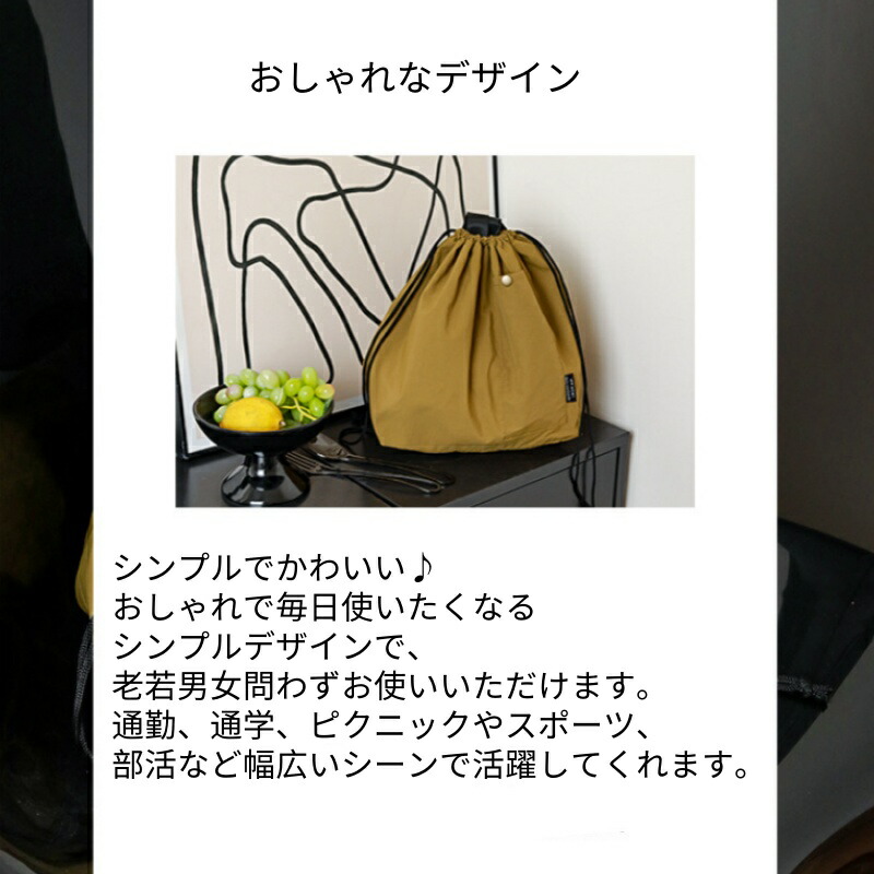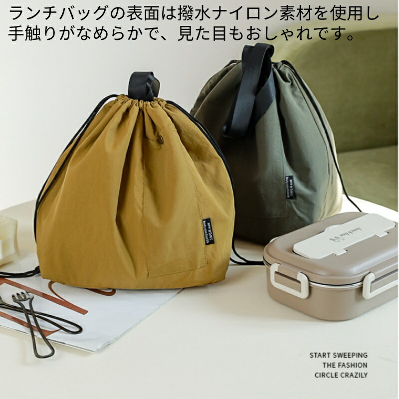 巾着型 ランチバッグ 保冷 保温 ペッ 弁当箱 水筒 子供用弁当箱 水筒 お弁当箱 お弁当袋 お弁当袋 人気 イェロー カーキグリーン ブラック
