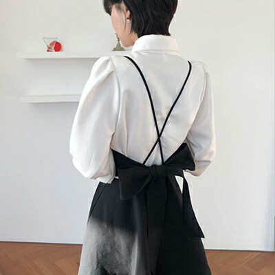 シアースリーブ ドッキングシャツ ボウタイシャツブラウス