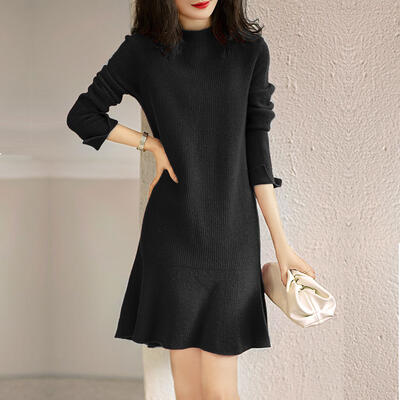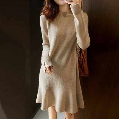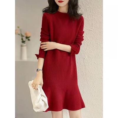 ニット ワンピース 袖あり カジュアル レディースファッション 続々登場 S M L XL ワインレッド カーキ ブラック