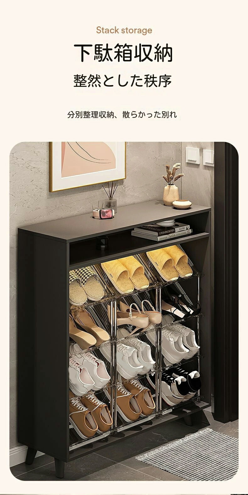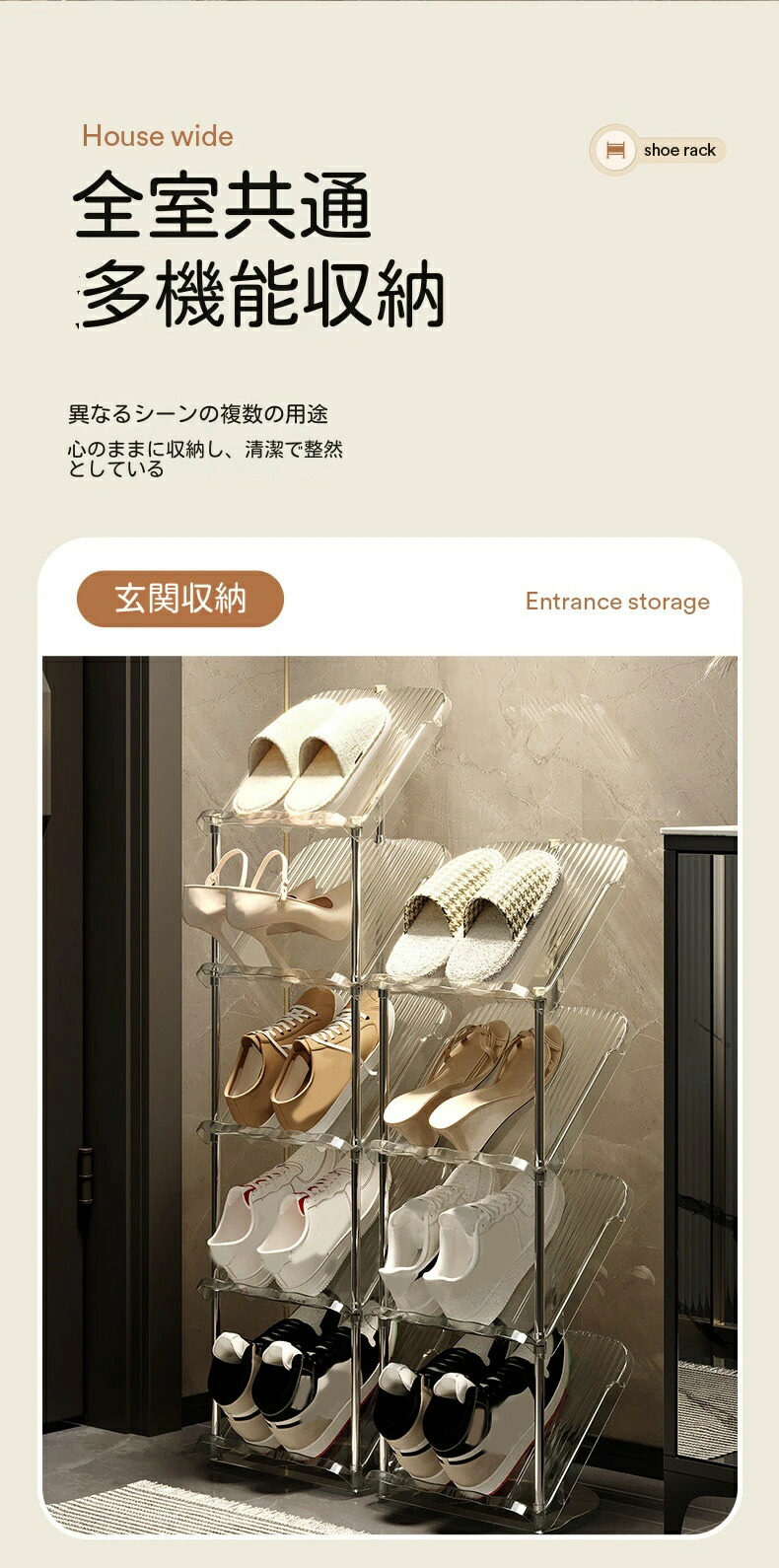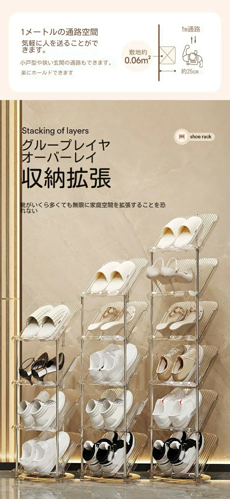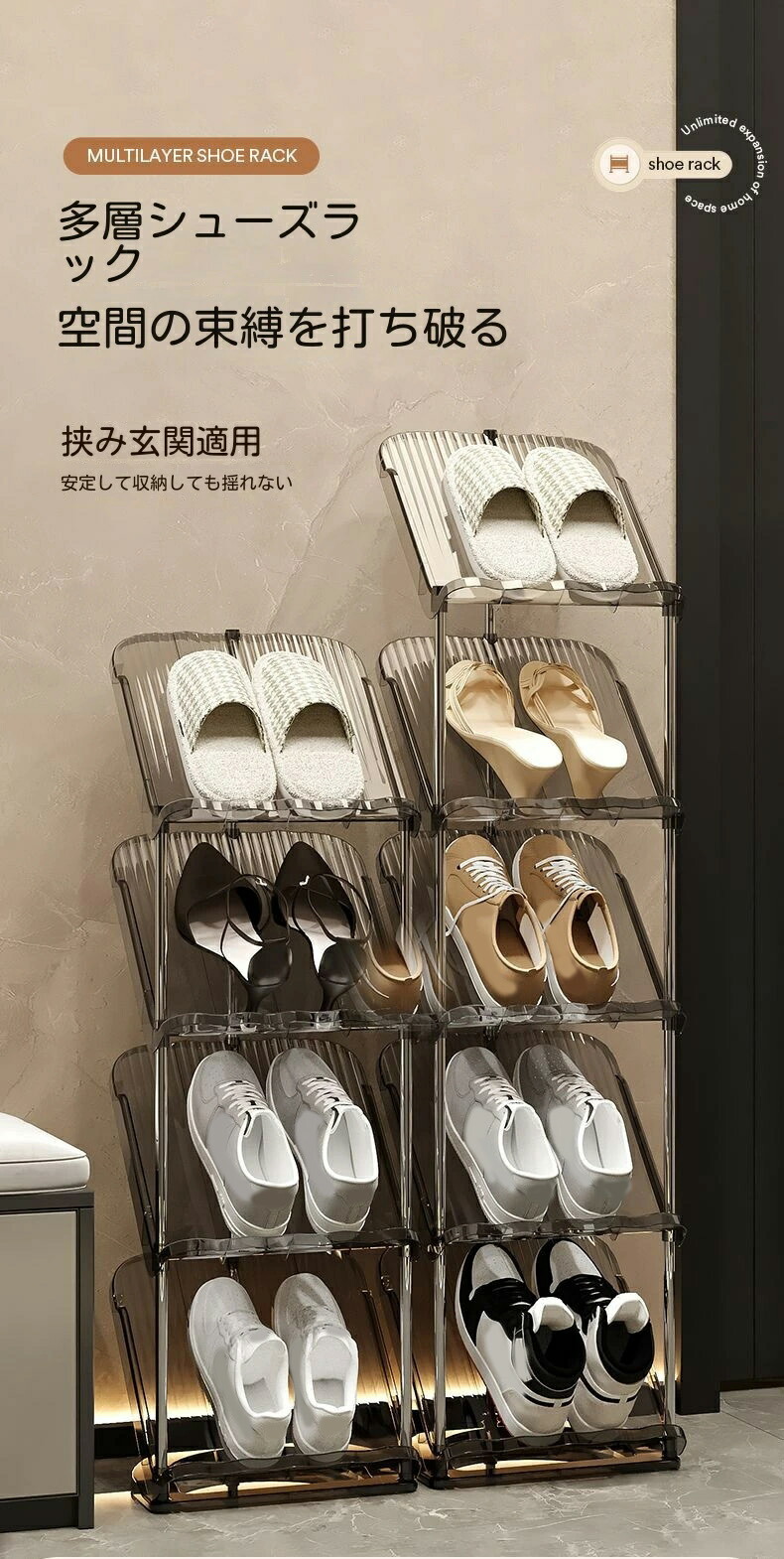 シューズラック 省スペース 狭い玄関 透明ホワイト 透明グレー 2階 3階 4階 5階 6階 7階 8階