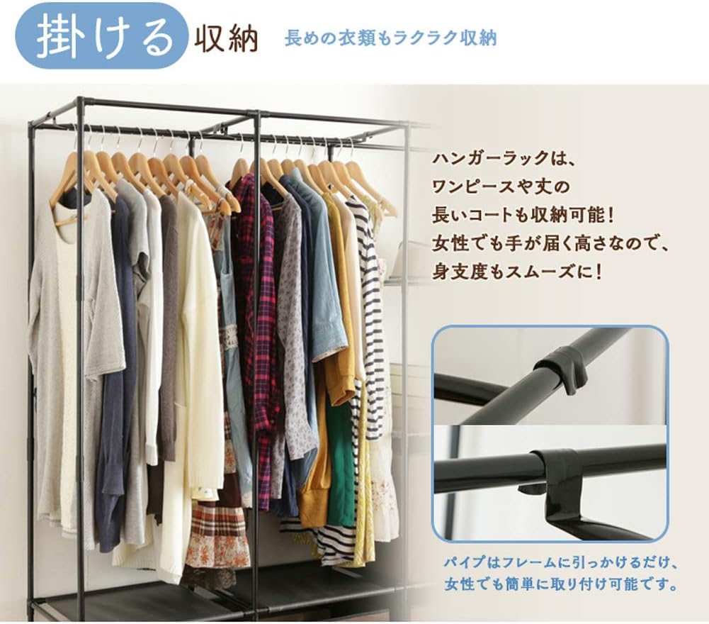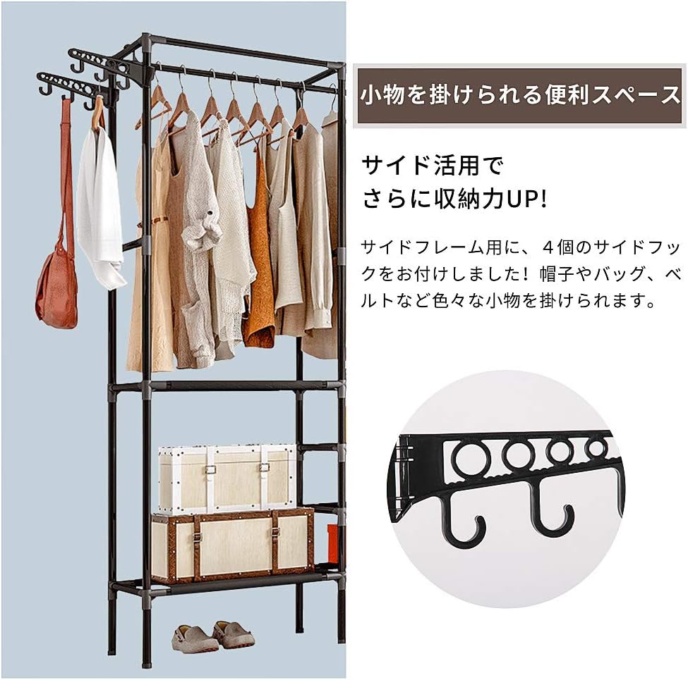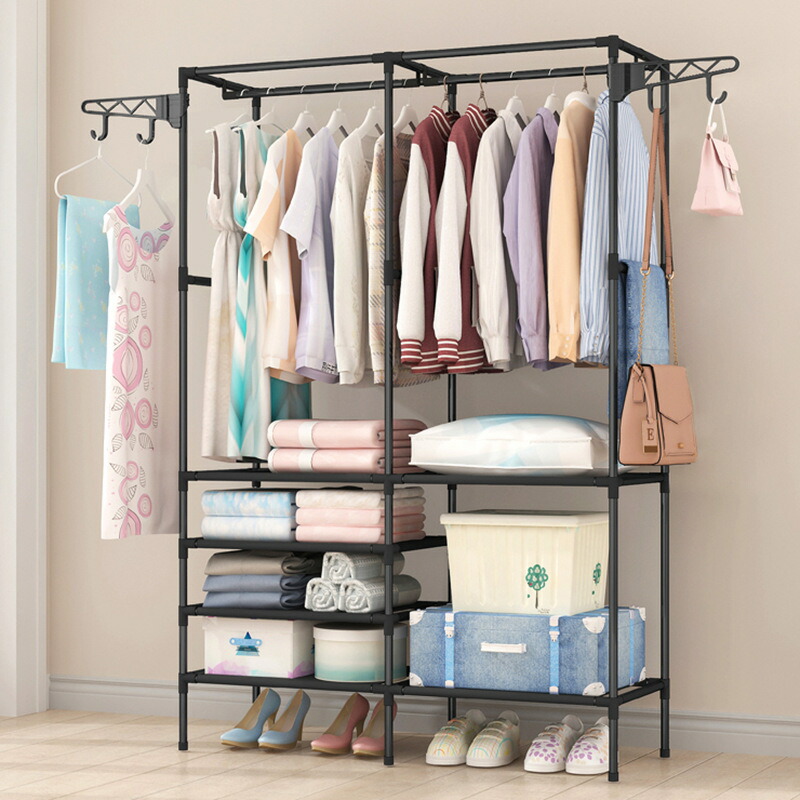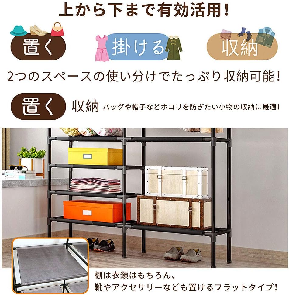 ハンガーラック ワードローブ パイプハ ホワイト ブラック 2列-クロークラック108*36*170cm 3列-クロークラック160*36*170cm