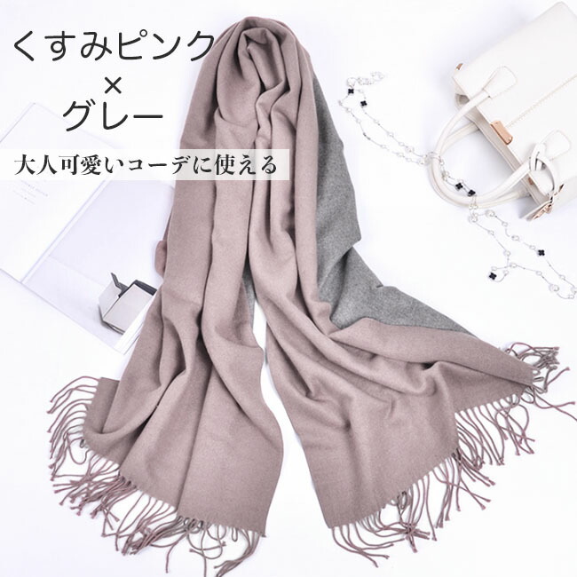 マフラー 大判 バイカラー リバーシブ バッグ 小物 ブランド雑貨 通販 ブラウン×ベージュ くすみピンク×グレー くすみライトピンク×うすピンク ブラック×グレー ダックグレー×グレー くすみブルー×グレー グレー×ライトグレー ワインレッド×グレー ピンク×グレー