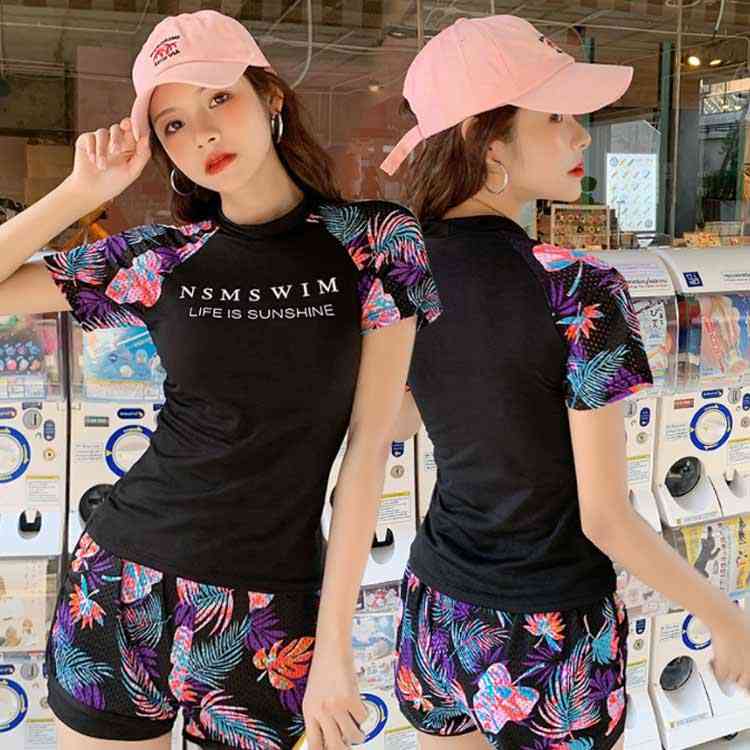 ラッシュガード ボタニカル柄 上下セッ 水着 早い者勝ち ブラック ネイビー M L XL
