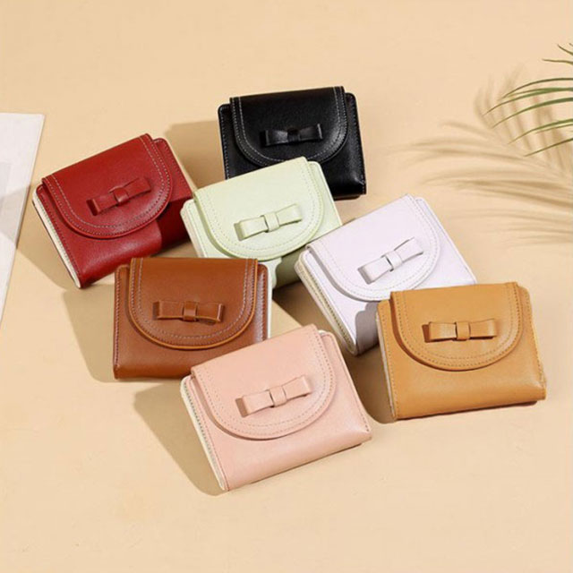 高校生 カード入れ コンパクト リボン 財布 ケース レディース財布 新登場! グリーン ピンク イエロー レッド ブラウン ブラック