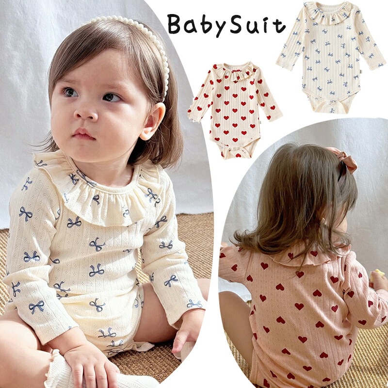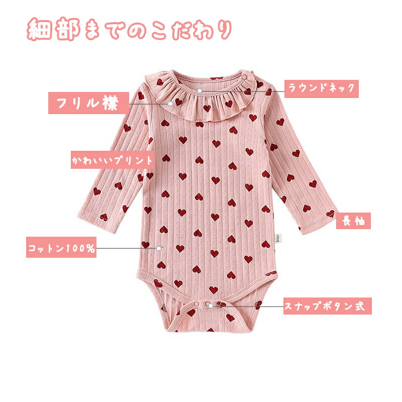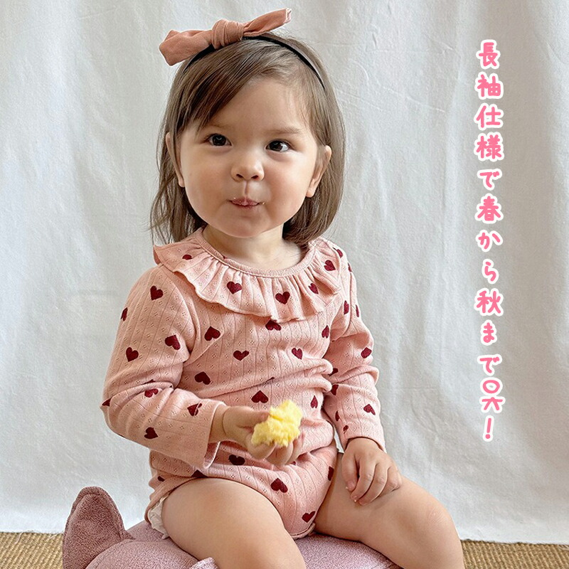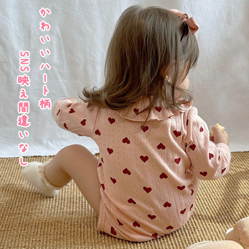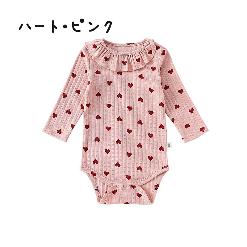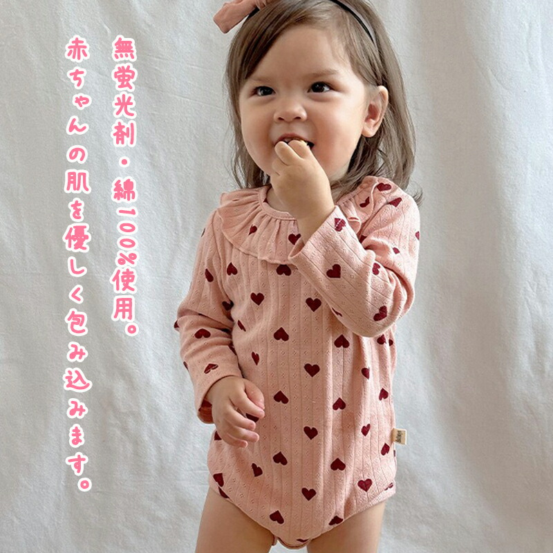 リボンの66cm 73cmが当営業日に ベビー ベビー服 ファッション カバーオール ロンパース 通販 ハート・杏色 ハート・ピンク リボン 66cm 73cm 80cm 90cm