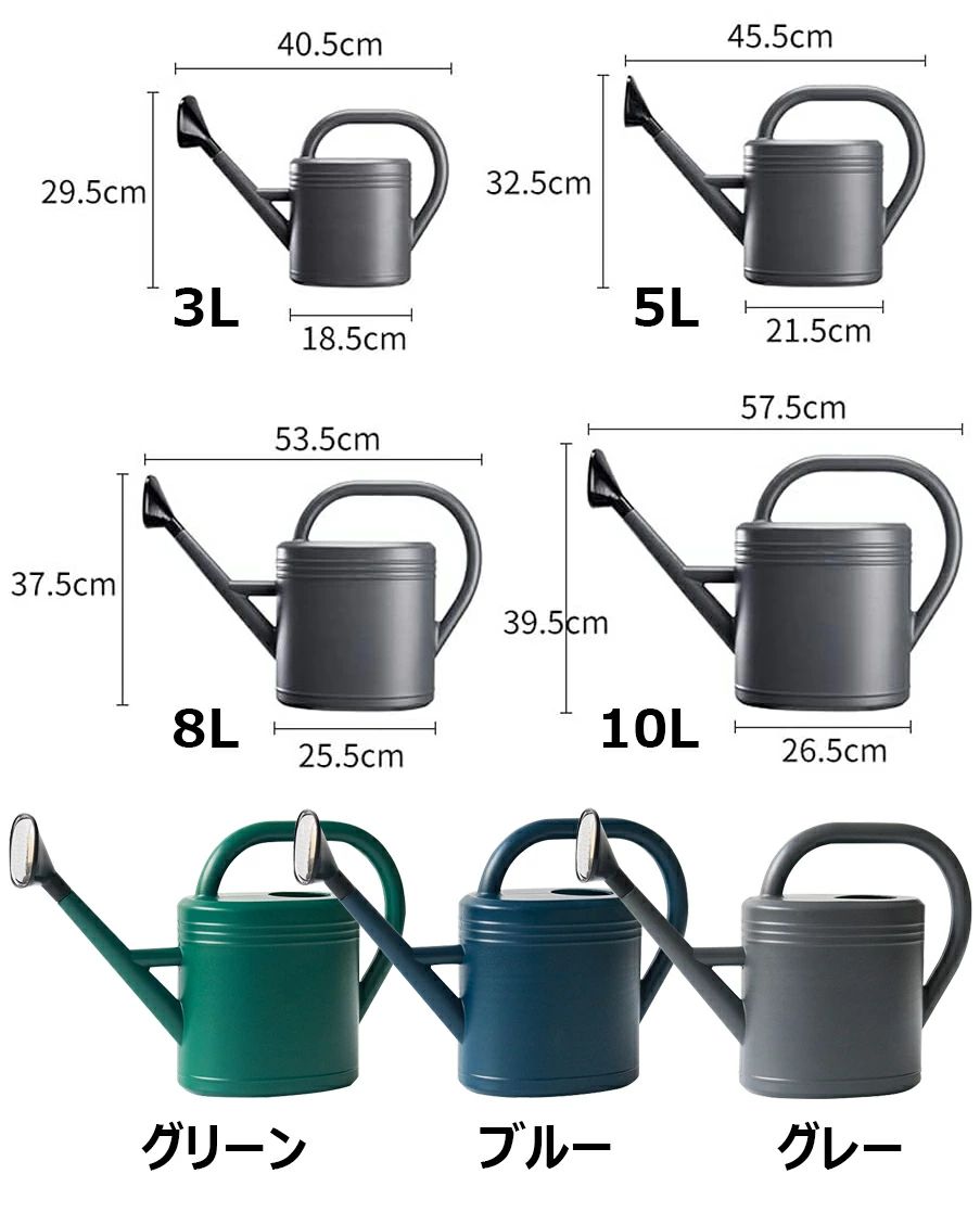 如雨露 水差し 3 5 810L 長 グリーン ブルー グレー 3L 5L 8L 10L