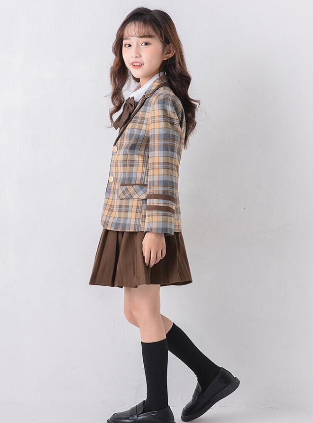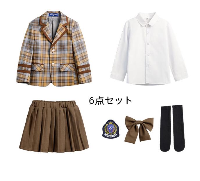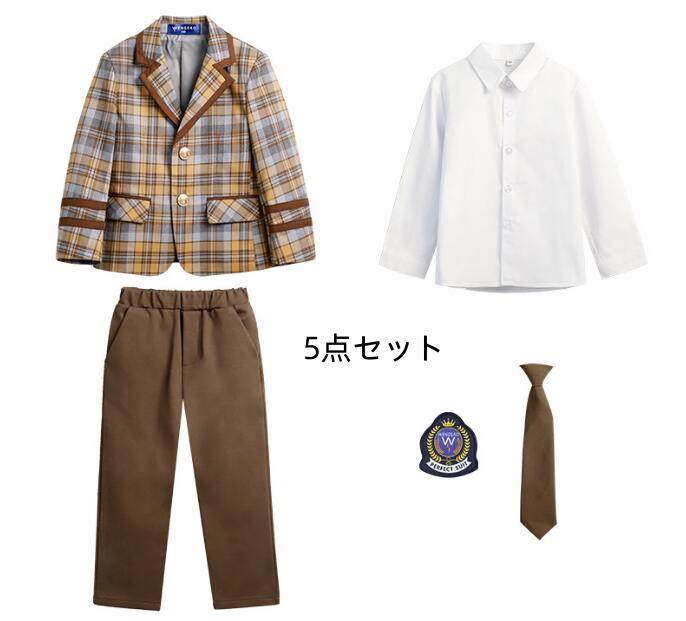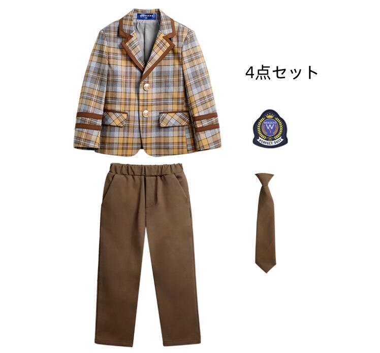 子供 フォーマルスーツ チェック柄 男女お揃いスーツ 男の子 パンツセット 女の子 スカートセット 入学式 スクールスーツ キッズ ピアノ 発表会 子供服 合唱団体服 演奏会 ブラウン
