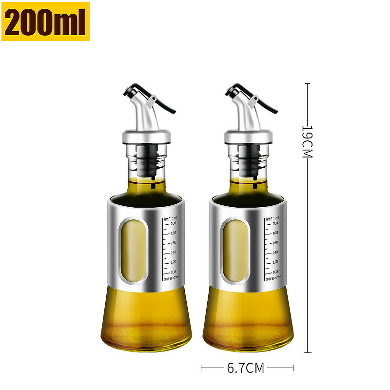 オイルボトル 油差し 液だれしない 醤油差し 酢ボトル ドレッシング ボトル 片手オイル入れ 耐熱ガラス ステンレス オイルポット 油容器 調味料入れ 調味料ボトル 200ml-5 自動的に開の注ぎ口