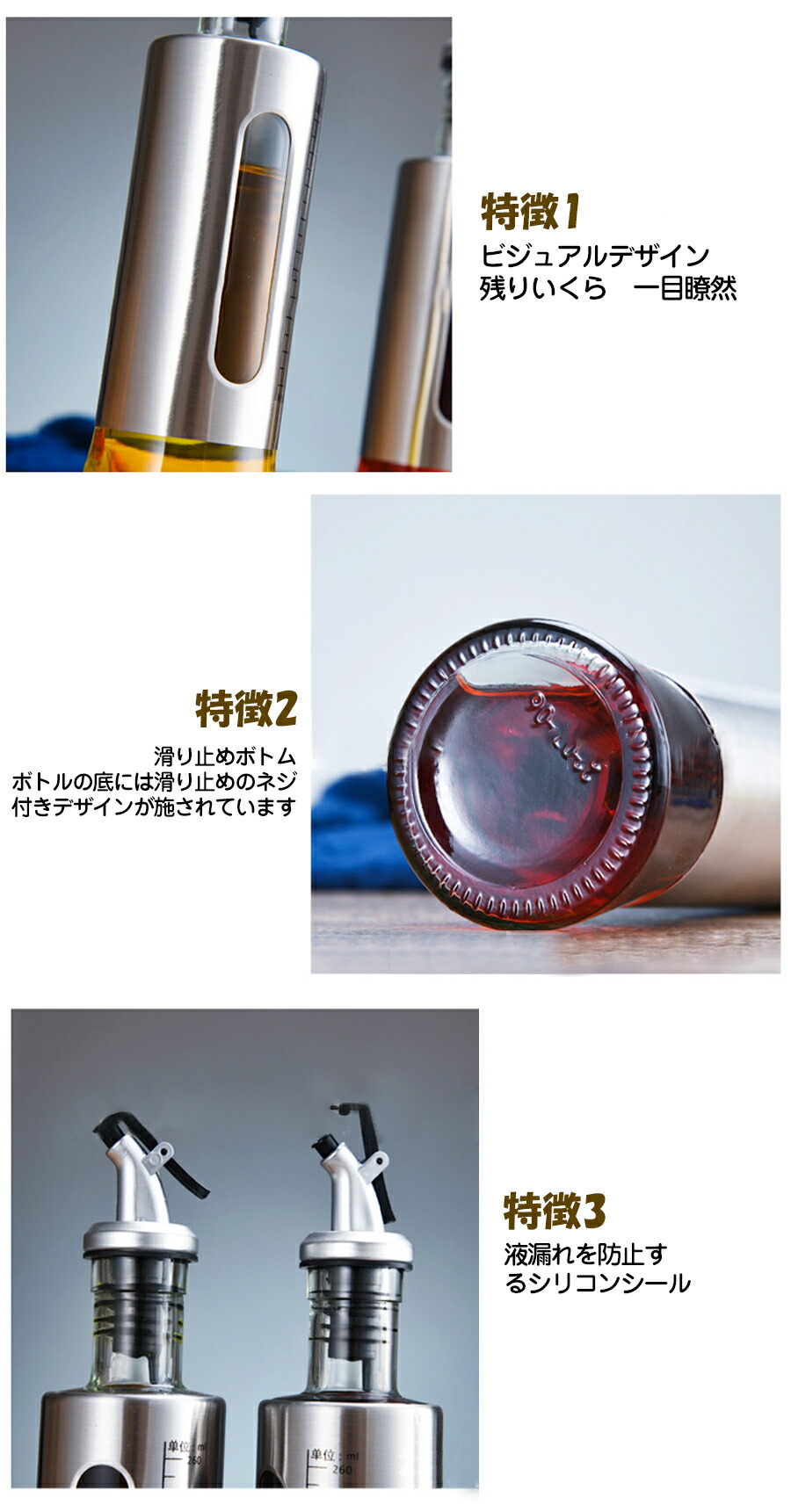 キッチン用オイルディスペンサーボトル、 保存容器 調味料入れ 醤油 ソース差し 超目玉商品