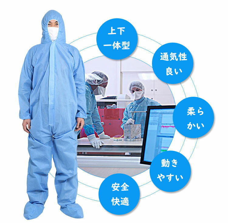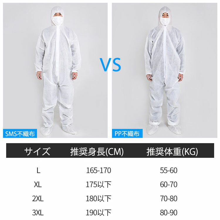 防護服 使い捨て 保護服 作業服 PP ホワイト ブルー ホワイト(20枚)+ブルー(30枚) ホワイト(30枚)+ブルー(20枚) XL XXL XXXL