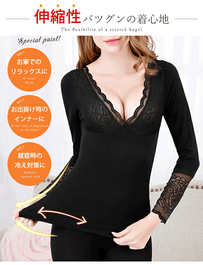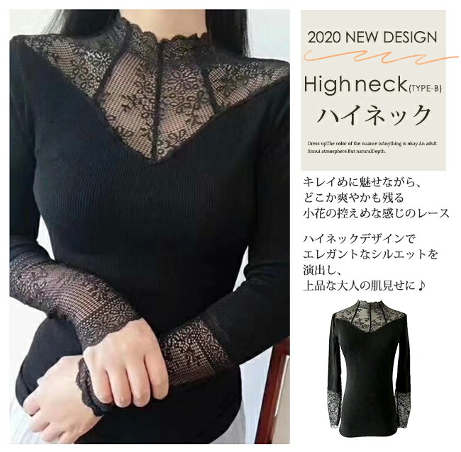 先行最強配送 インナー レース 長袖 トップス Tシャツ カットソー 特集 ブラックA ブラックB ブラックA+ブラックB