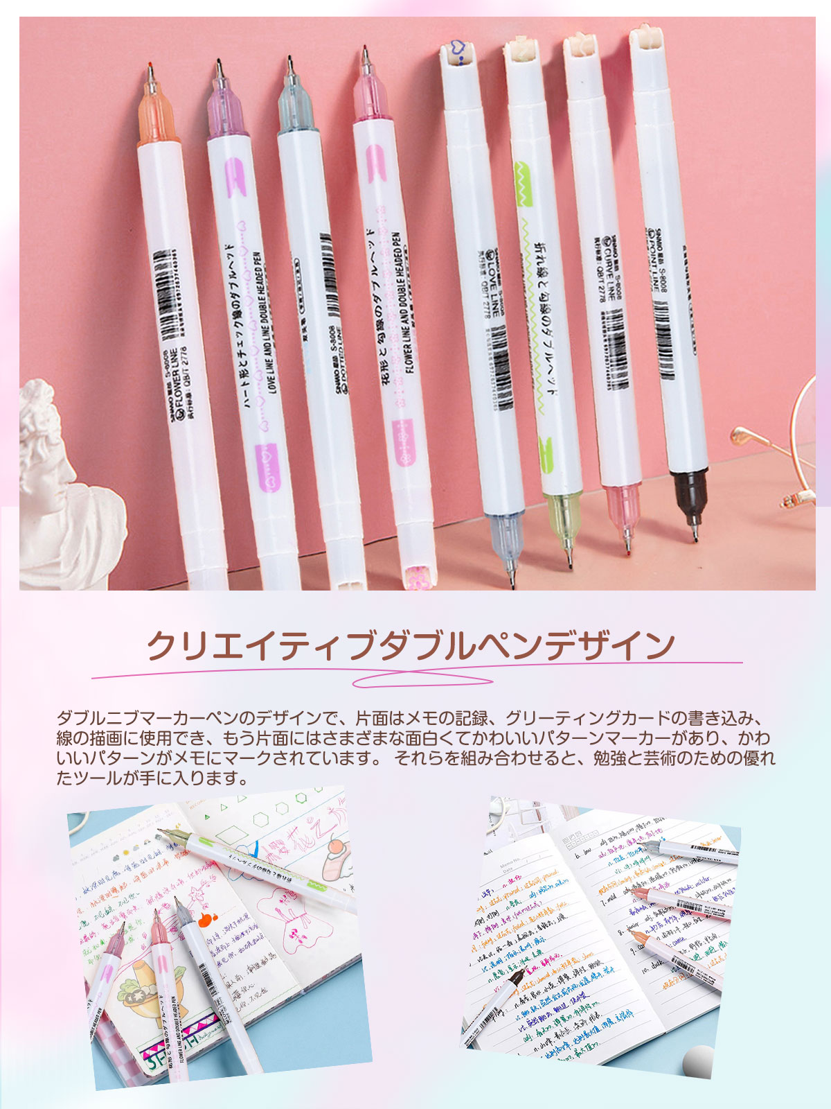 カーブペン 蛍光ペン 水性ペン 細字ペン先 花柄/ハート/点線/波線のローラースタンプ マルチペン 速乾 手帳 ノート ラインを引く 8本 カラーペン セット レインボーカーブペン 水性ペン 8色細字ペン先 6種類ローラースタンプ 波線 速乾 DIY 手帳 日記 メモ取り用 オフィス 家庭 学校用品 8本カラーペンセット クラシックカーブペン 水性ペン 8色細字ペン先 6種類ローラースタンプ 波線 速乾 DIY 手帳 日記 メモ取り用 オフィス 家庭 学校用品 8本カラーペンセット クラシック