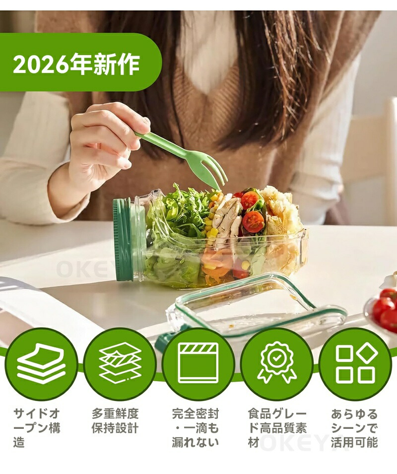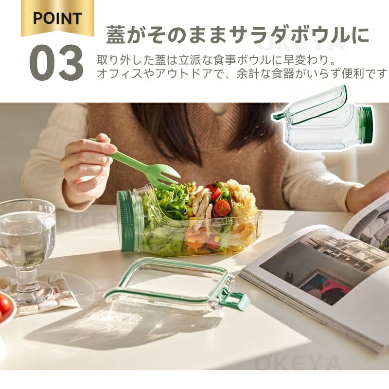 サラダ 弁当箱 側開き式 サラダポット キッチン用品 食器 調理器具 通販 グリーン オレンジ