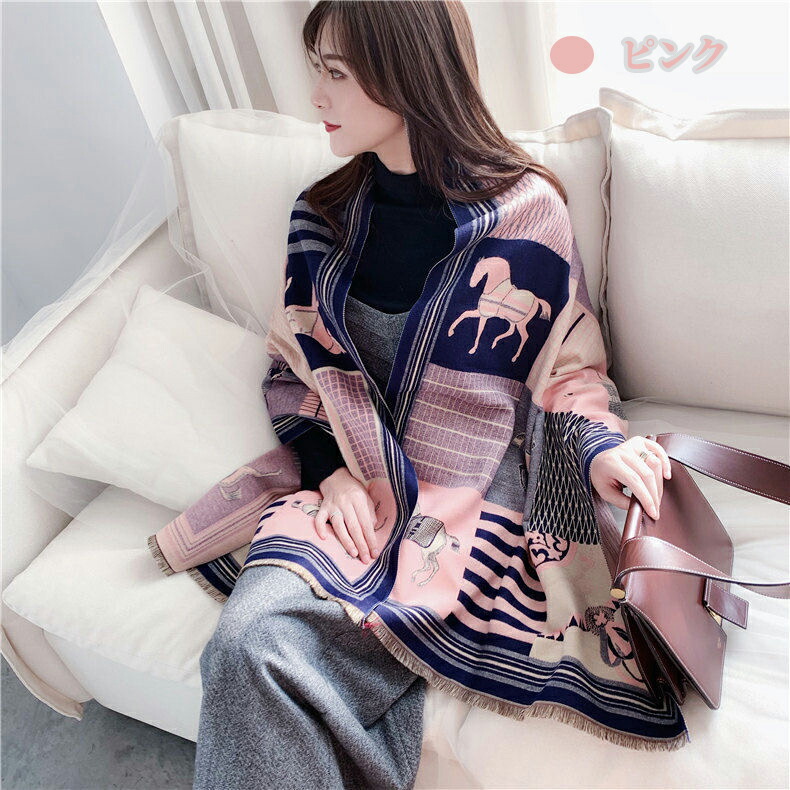 ストール 大判 大人気 ホース柄 ショ バッグ 小物 ブランド雑貨 特集 オレンジ ピンク ブルー レッド