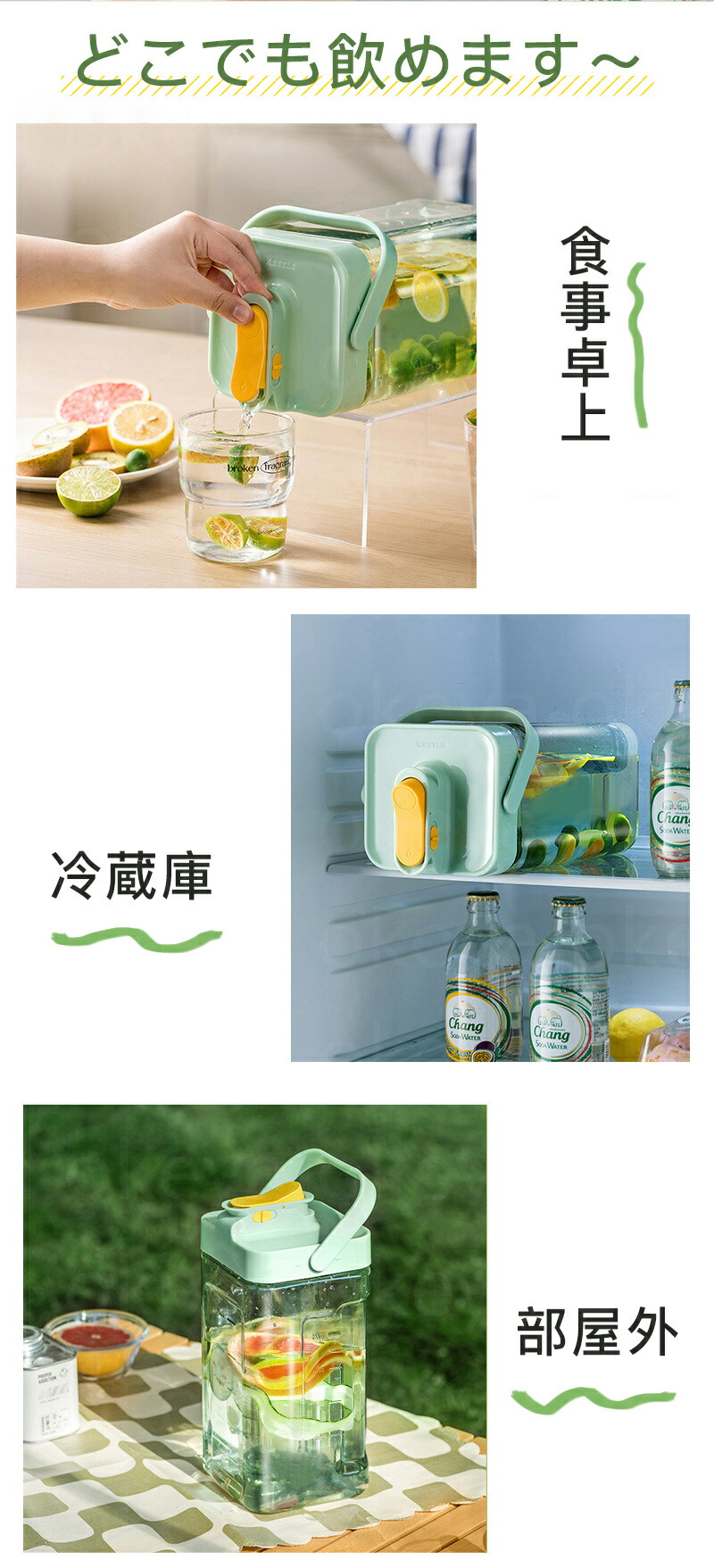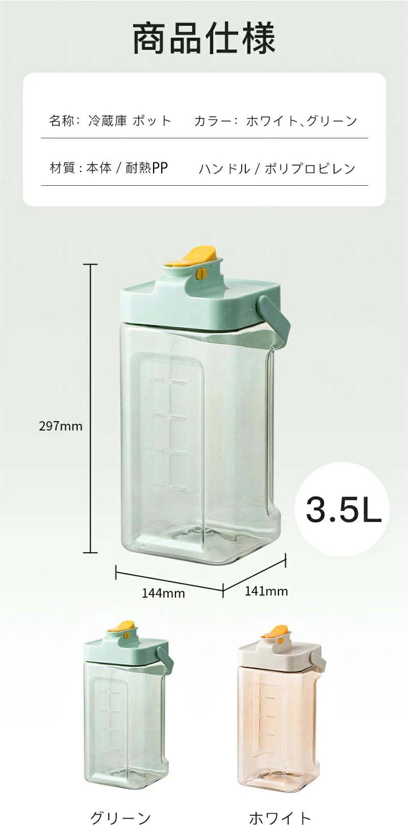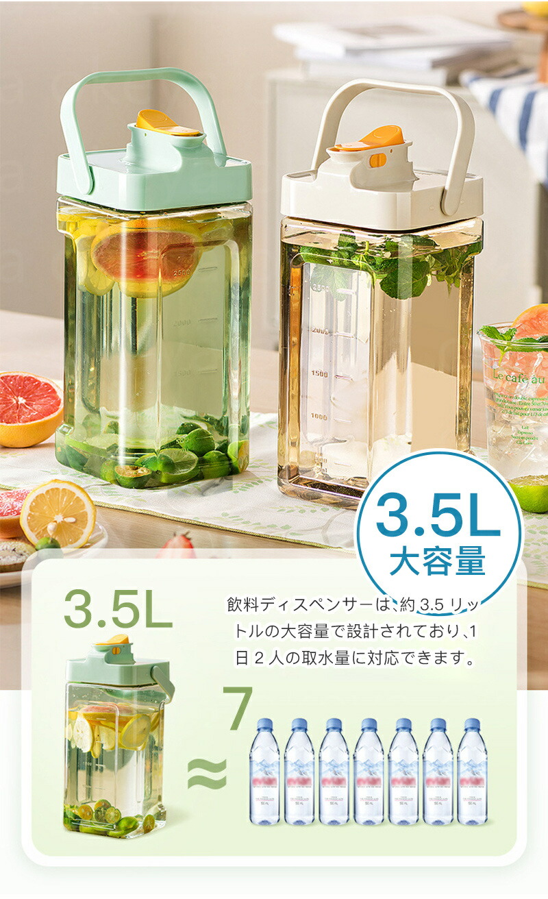 冷蔵庫ポット ドリンクピッチャー 蛇口 キッチン用品 食器 調理器具 豊富な品揃え グリーン ホワイト 3.5L NEW 2.3L