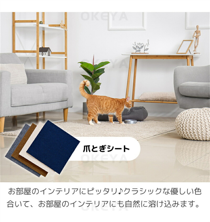猫爪とぎ ポスト 粘着式 猫用 厚手 ライトグレー ダークグレー ベージュ ブラウン ブラック ブルー 30×30cm 30×60cm 60×60cm 30×100cm 40×100cm 60×100cm