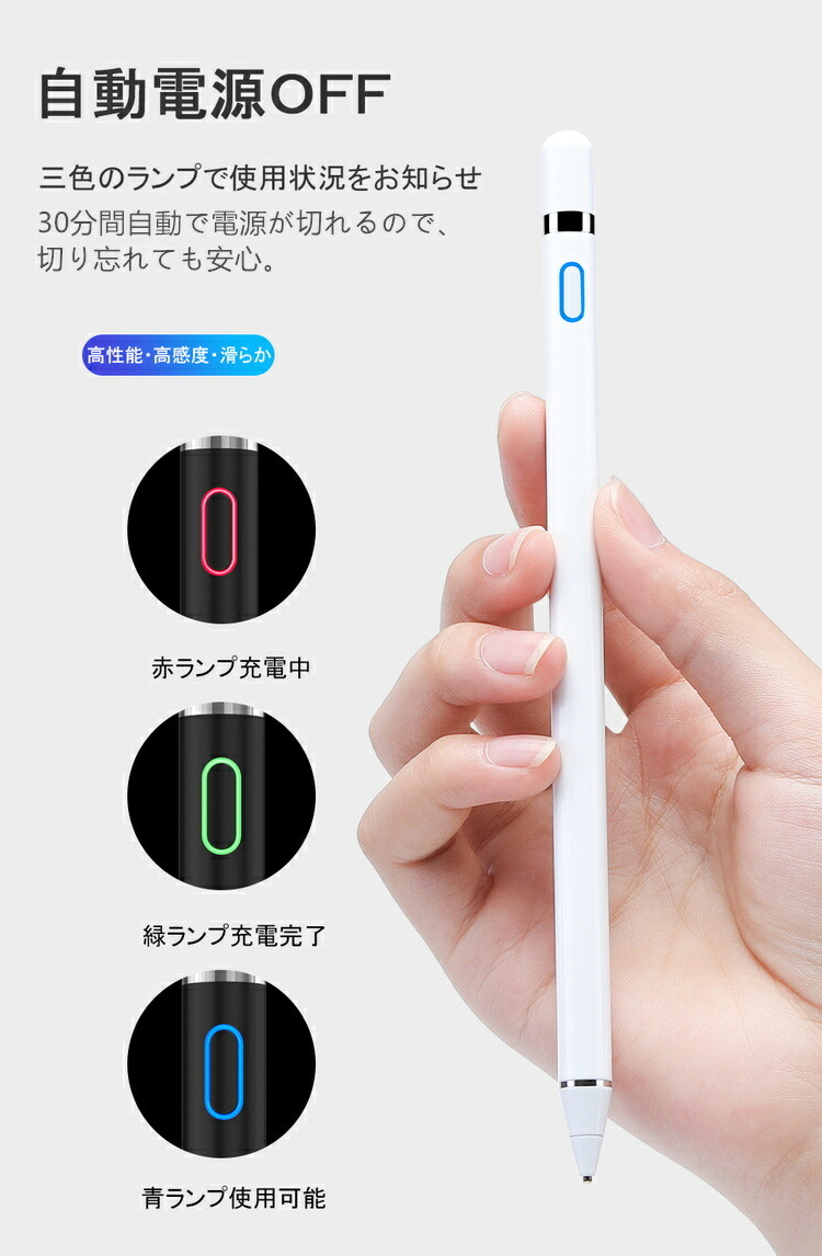 iPad タッチペン タブレット スマホ スタイラスペン 極細 ペンシル iPhone Android 銅製ペン先 USB充電式 スマートフォン A16 10 9876 mini 第11世代