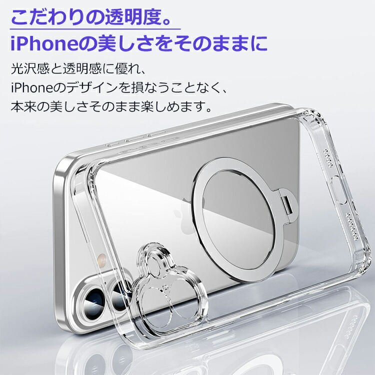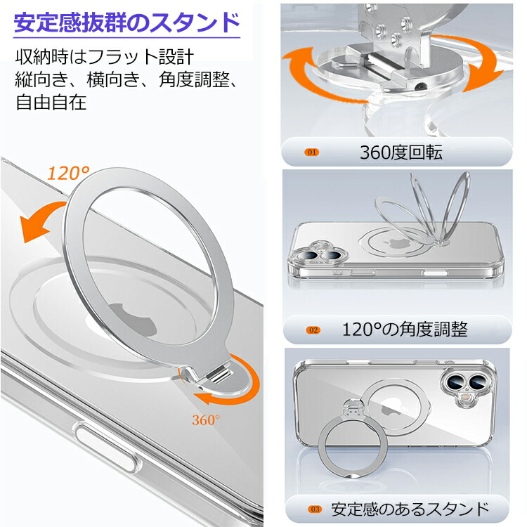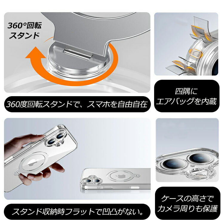 【多機能360°回転スタンド】iPhone16e ケース iPhone16 ケース iPhone16 Pro ケース アイフォン16 ケース iPhone15 ケース iPhone14 ケース iPhone13 ケース iPhone12 ケース iPhone15 Pro ケース アイフォン15 ケース Magsafe ケース MagSafe対応 クリアカバー 耐衝撃 マグネット 磁気吸着 リング カメラ保護 MOFT対応 マグネット内蔵 薄型 スタンド機能 回転リング リング付き スタンド付き クリア マット クリア 半透明 指紋防止 かわいい 韓国 おしゃれ