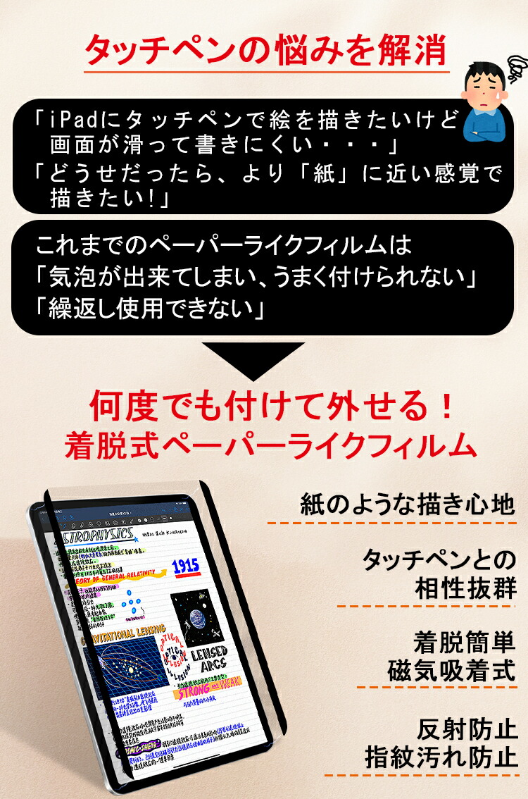紙のような描き心地 ペーパーライク iPad用 アイパッド Apple ペーパーライクフィルム iPad Air 13インチ M3 (2025) ペーパーライク iPad Air 11インチ M3 ペーパーライク iPad Air 13インチ M2 (2024) ペーパーライク iPad Air 11インチ M2 ペーパーライク iPad Pro 13インチ M4 ペーパーライク iPad Pro 11インチ M4 ペーパーライク ipad 第11世代 フィルム A16 ipad 第11世代 ペーパーライク ipad A16 第11世代 ペーパーライクフィルム ipad 第10世代 フィルム ipad 第10世代 ペーパーライク 液晶保護フィルム ipad 10世代 フィルム ipad 10世代 ペーパーライク ipad 10世代 液晶保護フィルム ipad 10世代 保護シール ipad 第7世代 フィルム ipad 12.9 フィルム ipad pro 11インチ フィルム ipad 第8世代 ペーパーライク フィルム ipad pro 11フィルム ipad 第9世代 フィルム ipad pro12.9 ペーパーライク iPad mini6フィルム iPad mini6 ペーパーライク ipad フィルム 第6世代 ipad フィルム おすすめ 人気 売れている 注目 ペーパーライク iPad用 アイパッド Apple ペーパーライクフィルム クリア 高透過率 ペーパーライク 覗き見防止 光沢仕様 クリア 非光沢仕様 マット仕様 人気 飛散防止 気泡ゼロ iPad ペーパーライク フィルム iPad用 ペーパー タッチペン 文字用 液晶保護フィルム ペン先の磨耗低減仕様 貼り方も簡単 互換性 お絵描き お絵かき 勉強 ゲーム イラスト 漫画 イラスト ケント紙 上質紙 紙 ブルーライトカット 反射低減 アンチグレア 反射防止 指紋防止 気泡防止 指紋つかない 指紋防止 さらさら ザラザラ 貼り直し可能