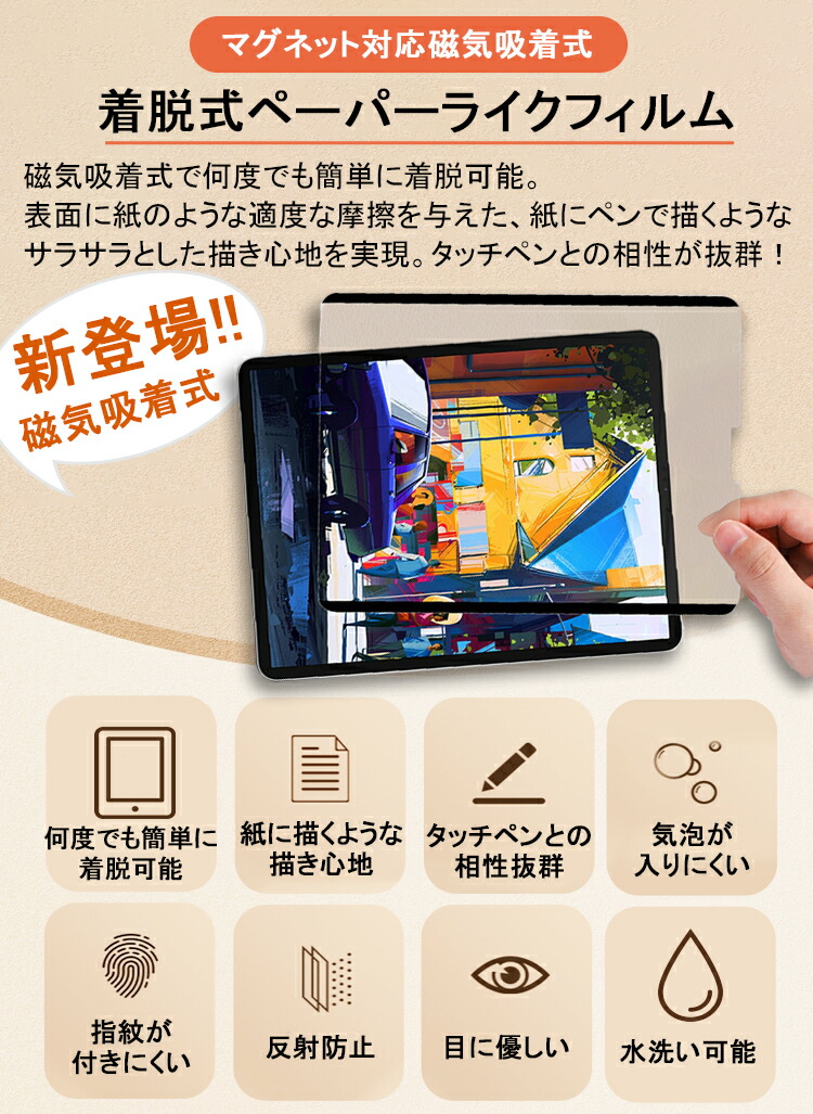 【紙のような描き心地】着脱式ペーパーライク フィルム iPad Air 11インチ iPad Pro 13インチ M2 M3 M4 M5 A16 iPad A16 第11世代 第10世代 第9世代 第8世代 液晶保護フィルム iPad Air5 mini7 mini6 Air4 iPad Pro 11 12.9 13 インチ iPad mini5 mini4 Air3 第 7 6 5 4 3 世代 8.3 9.7 10.2 10.5 10.9 フィルム 2022 タッチペン iPad ペンシル アンチグレア 非光沢 指紋/反射防止 ガラスフィルム iPad Air iPad Pro 9.7 フィルム アイパッド エアー マグネット対応 2025年 新型2025 新発売 最新 モデル 新型iPad