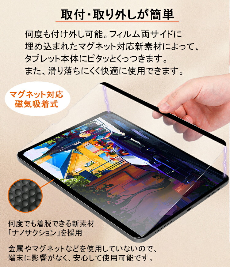 着脱式 ペーパーライクフィルム iPa iPad Air 11 (M3 2025 / M2 2024) iPad Air 13 (M3 2025 / M2 2024) iPad 第11世代 (A16 2025) iPad Pro 11 (M5 2025 / M4 2024) iPad Pro 13 (M5 2025 / M4 2024) [12.9インチ] iPad Pro 12.9 [10.9/11インチ] Pro 11/Air4/Air5 [10.9インチ] iPad 第10世代 [10.5インチ] iPad Pro 10.5/Air3 [10.2インチ] iPad 第7/8/9世代 [9.7インチ] iPad 5/6世代/Pro 9.7 [8.3インチ] iPad mini6/mini7 [7.9インチ] iPad mini4/mini5