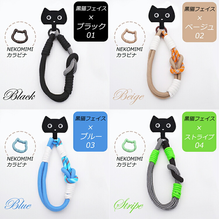 ハンドストラップ 猫型ホルダー付き ス スマートフォン タブレット 新作 黒猫 白猫 黒猫フェイス クリア 【00】ブラック×ホワイト 【01】ブラック 【02】ベージュ 【03】ブルー 【04】ストライプ
