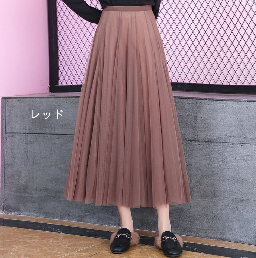 スカート レディース チュールスカート ボトムス スカート 特集 グレー ブラック 杏色 コーヒー色 レッド