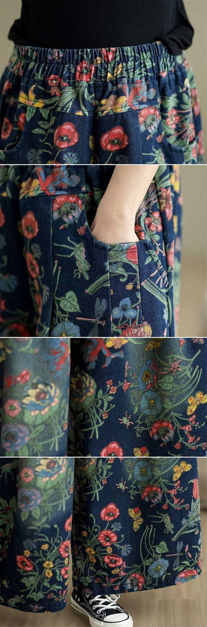 デニム ワイドパンツ 花柄 新作 レデ ボトムス パンツ 新登場! M L XL 2XL