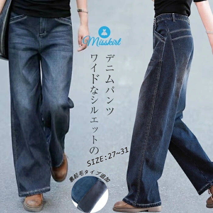 デニムパンツ レディース ワイドパンツ レディースファッション 続々登場 27 28 29 30 31 27-裏起毛 28-裏起毛 29-裏起毛 30-裏起毛 31-裏起毛