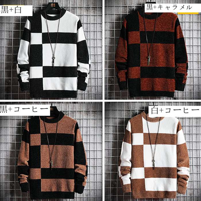ニット ケーブルニット セーター クル トップス ニット セーター 早い者勝ち 白+コーヒー 黒+コーヒー 黒+キャラメル 黒+白 L XL 2XL 3XL