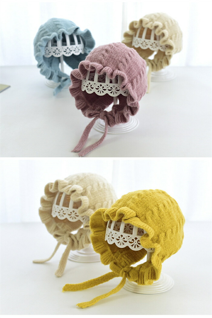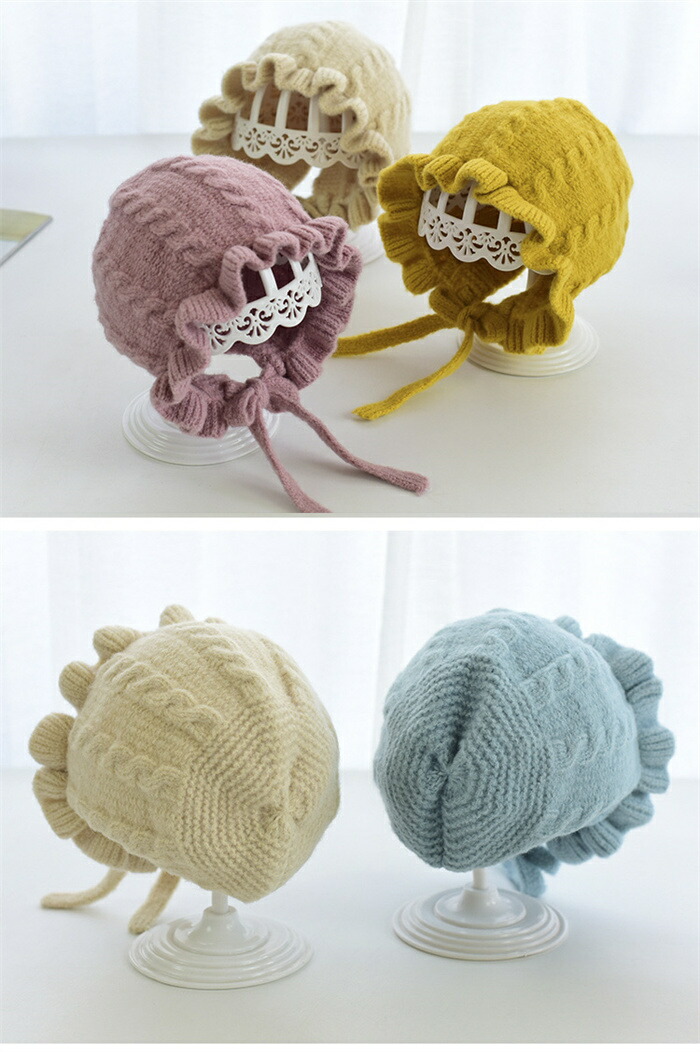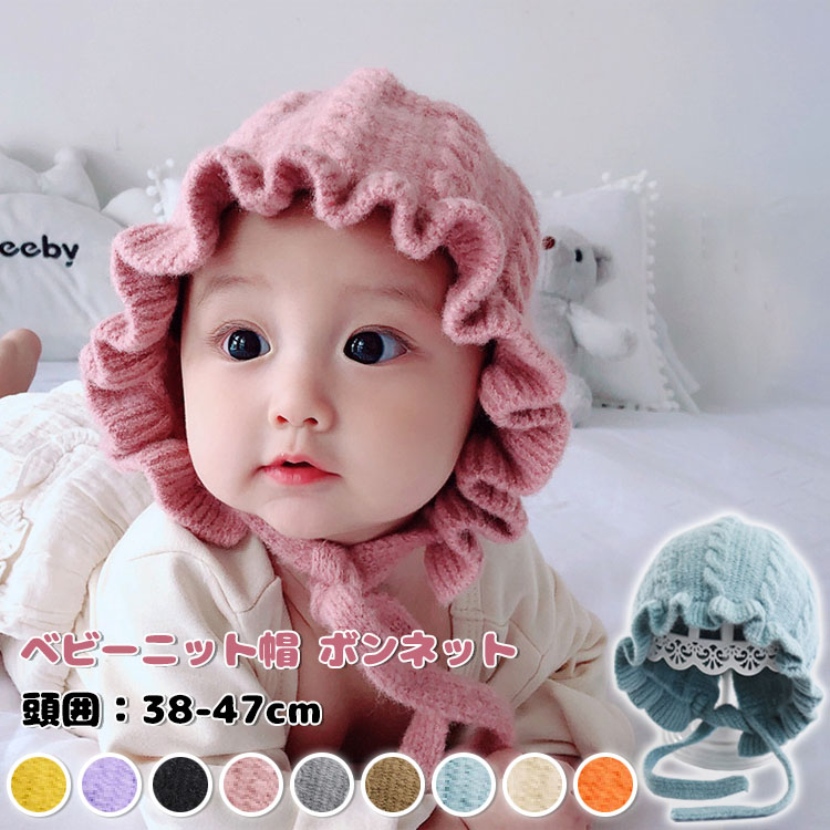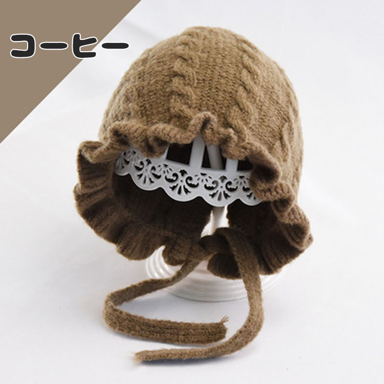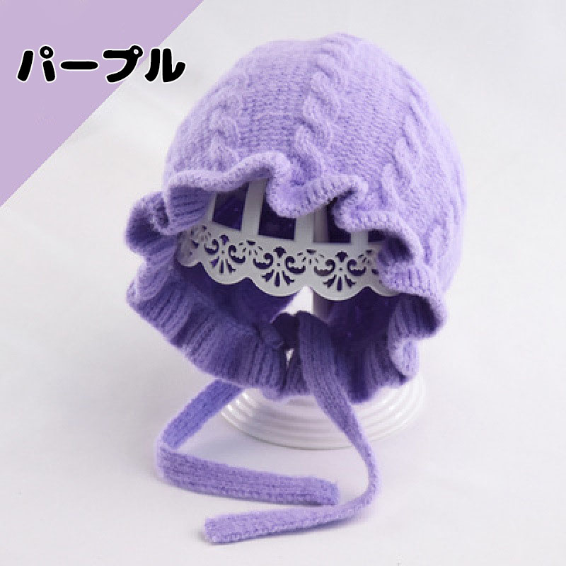 ベビーニット帽 ボンネット フリル プ ベビー ベビー服 ファッション 帽子 ニット帽 続々入荷中 イエロー パープル ブラック ピンク グレー コーヒー ブルー ベージュ オレンジ