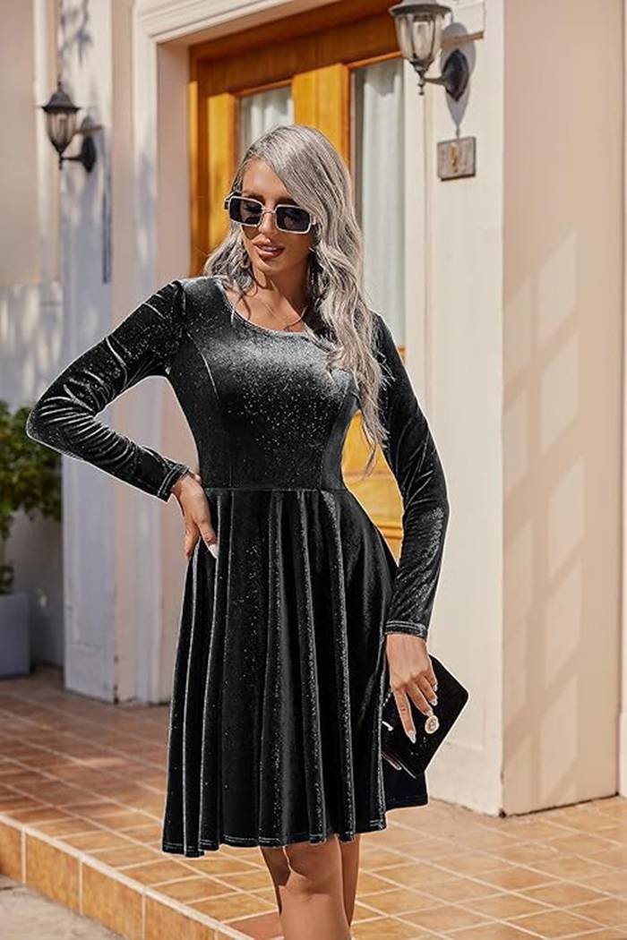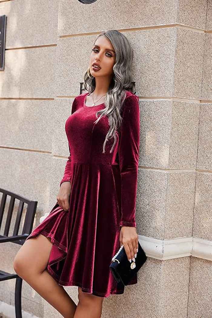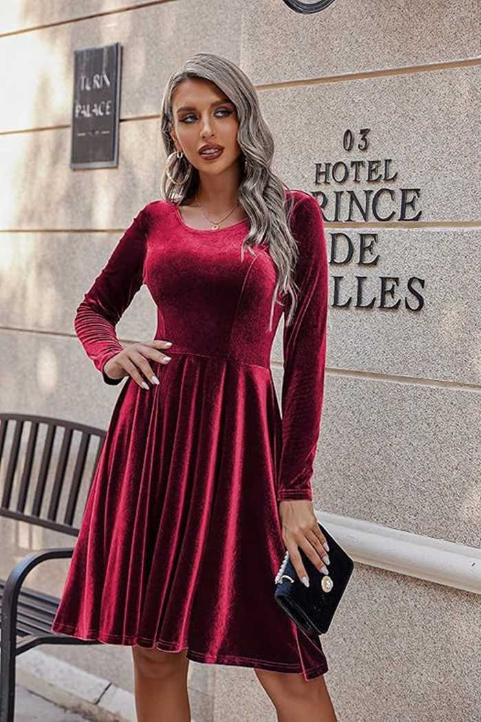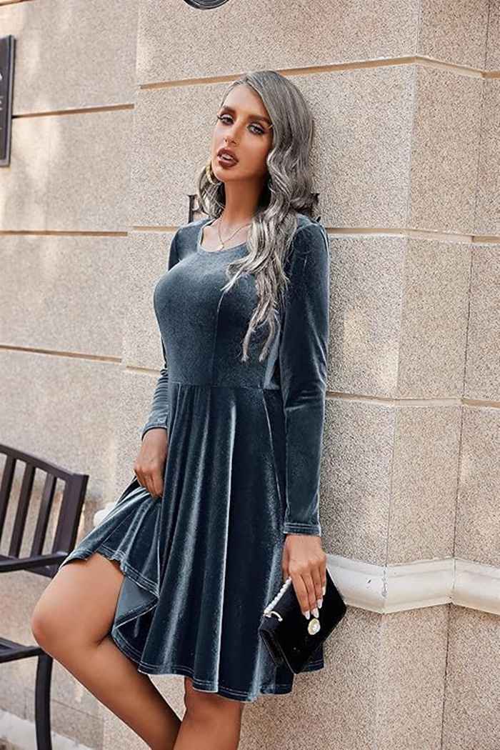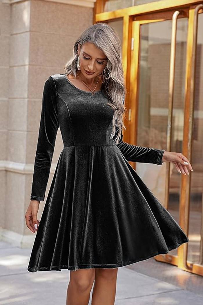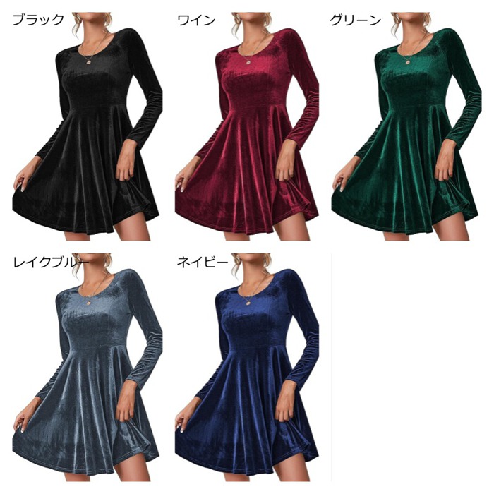 ベロアワンピース レディース 無地 長 レディースファッション 新登場! ブラック ワイン グリーン レイクブルー ネイビー M L XL 2XL