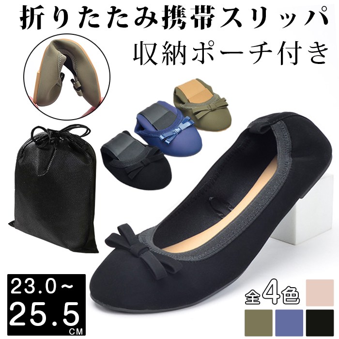 携帯スリッパ 折りたたみ ポーチ付き 日用品雑貨 文房具 手芸 続々登場 グリーン ブラック ブルー ピンク 【36】23.0cm 【37】23.5cm 【38】24.0cm 【39】24.5cm 【40】25.0cm 【41】25.5cm