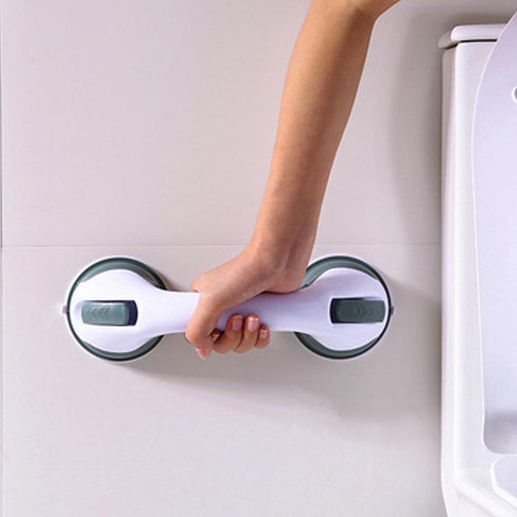 壁に押し付けながらレバーを引くだけで真空状態になった吸盤が強力に張り付く補助ハンドル