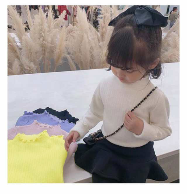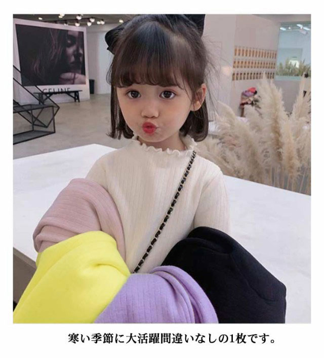 ハイネック Tシャツ 裏起毛 カットソ キッズ トップス Tシャツ カットソー 新登場! ピンク パープル ホワイト イエロー 80 90 100 110 120 130 140