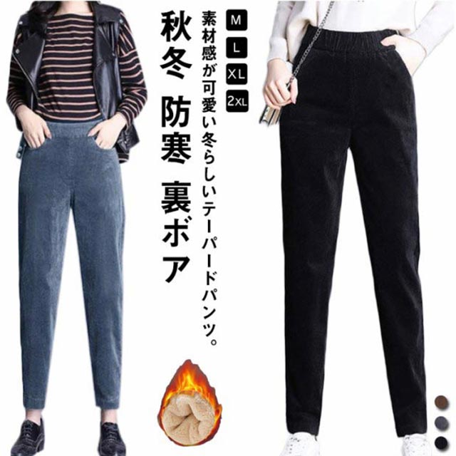 テーパードパンツ 裏起毛 コーデュロイ レディースファッション 超目玉商品 ブラック ブラウン グレー M L XL 2XL