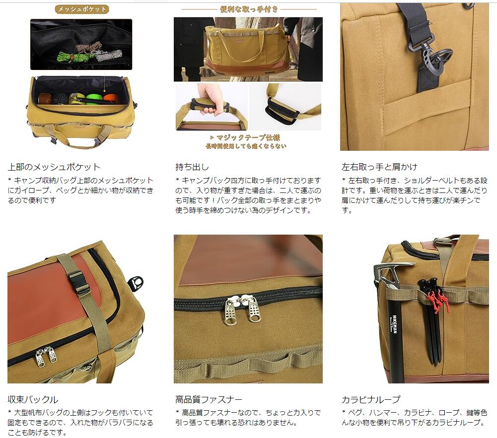キャンプバッグ トートバッグ ビッグバ スポーツ アウトドア 続々登場 ベージュSサイズ 53L ベージュLサイズ 120L ブラックSサイズ 53L ブラックLサイズ 120L