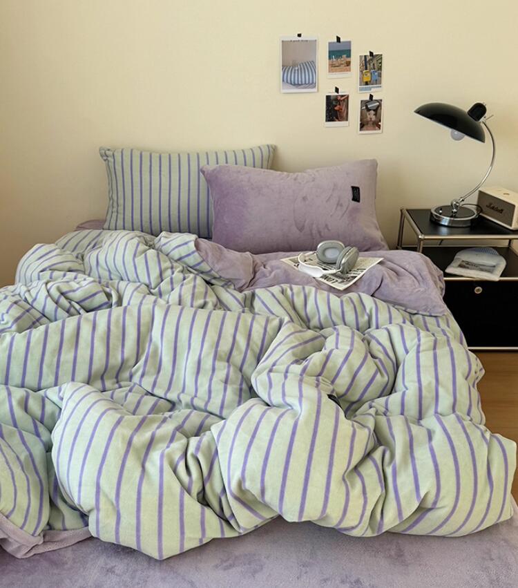 布団カバーセット ブルー 紫 ストライ 寝具 寝具カバー シーツ 寝具カバーセット 通販 シングル(3点セット) フラットシーツタイプ1.5m ボックスシーツタイプ1.5m ボックスシーツタイプ1.8m A B