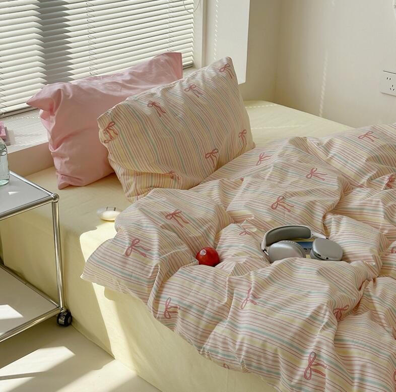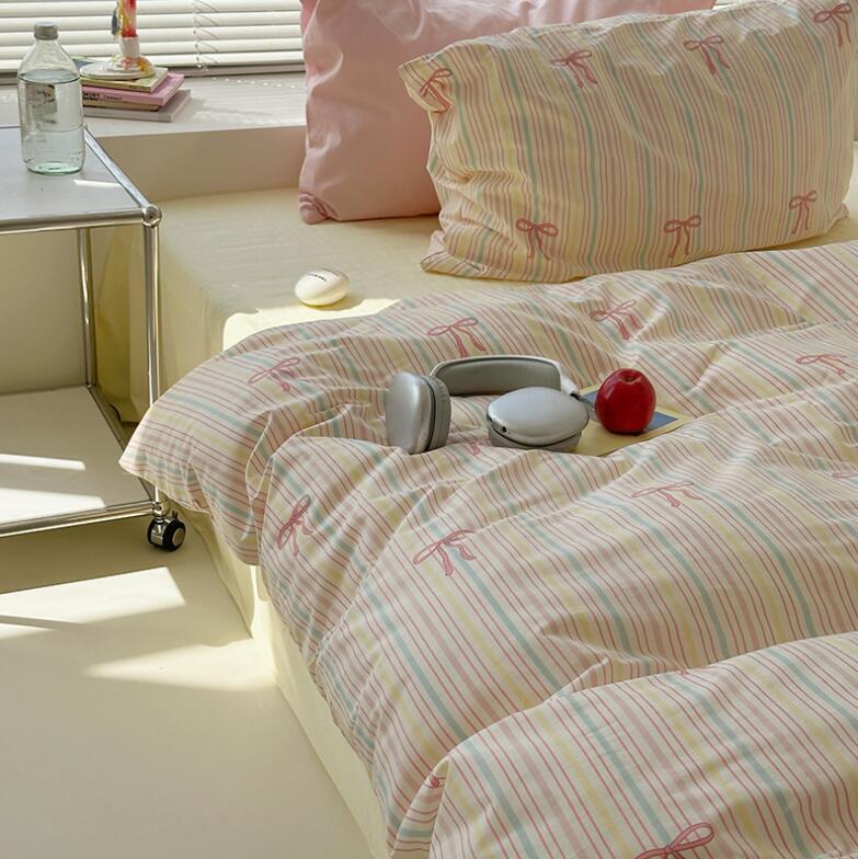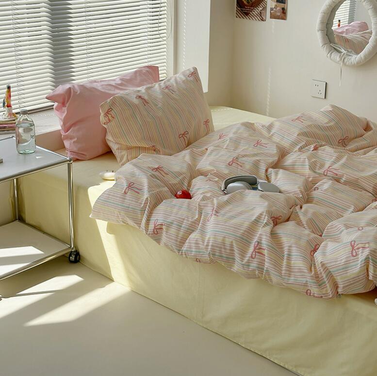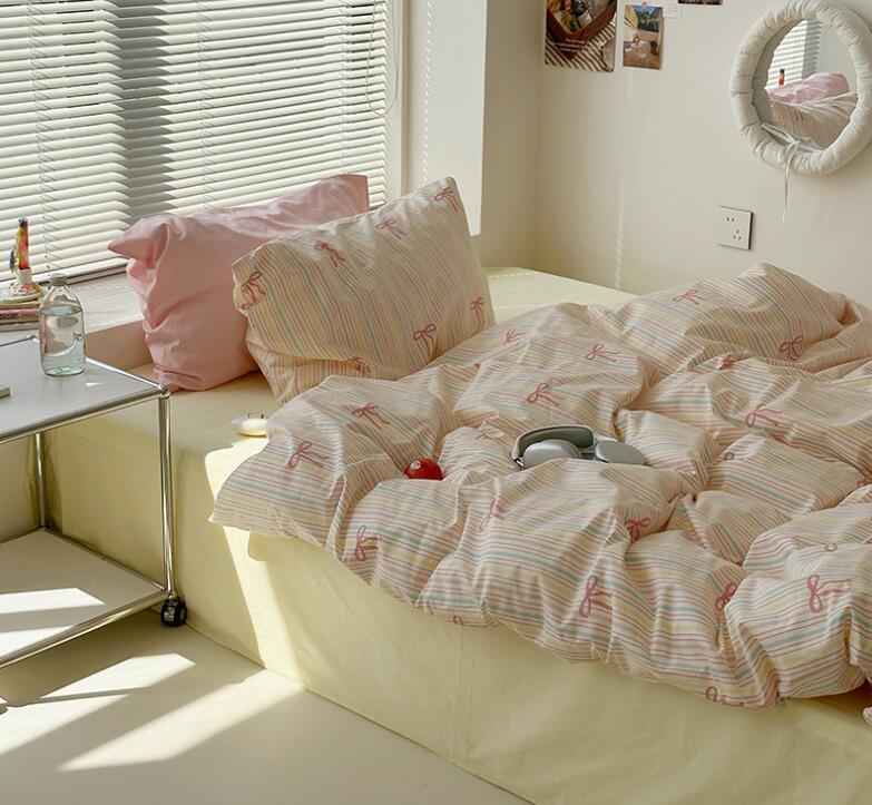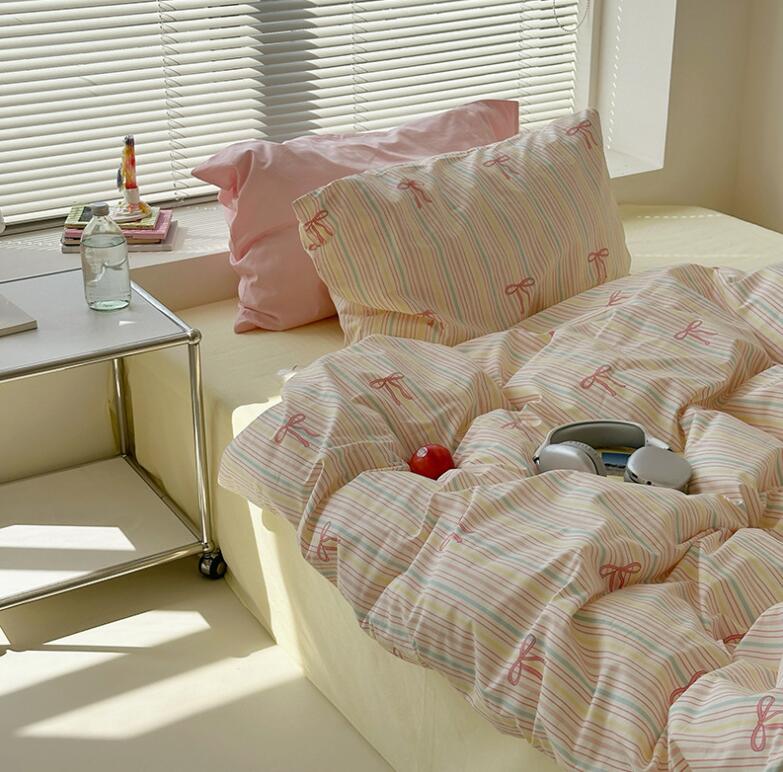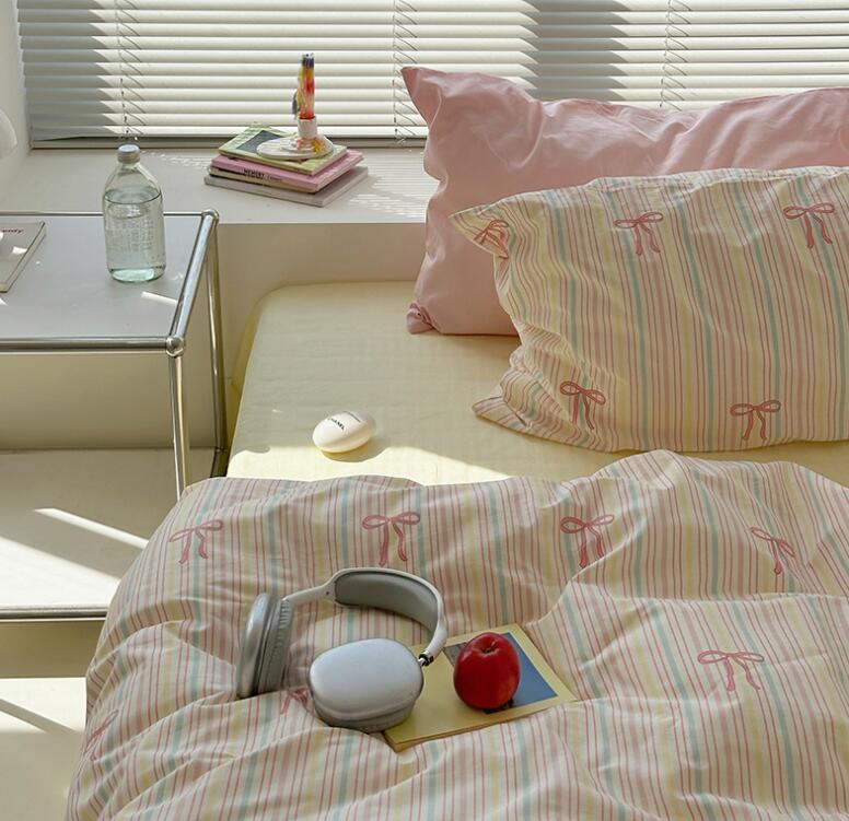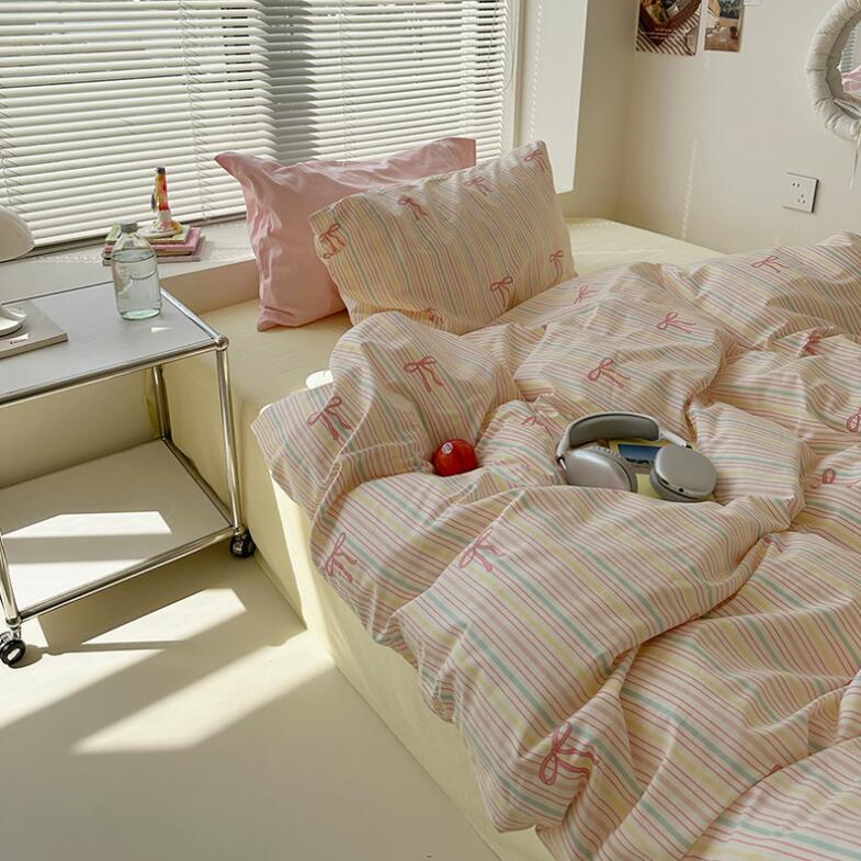 布団カバーセット 可愛いリボン柄 ピン 寝具 寝具カバー シーツ 寝具カバーセット 人気 シングル(3点セット) フラットシーツタイプ1.5m ボックスシーツタイプ1.5m ボックスシーツタイプ1.8m