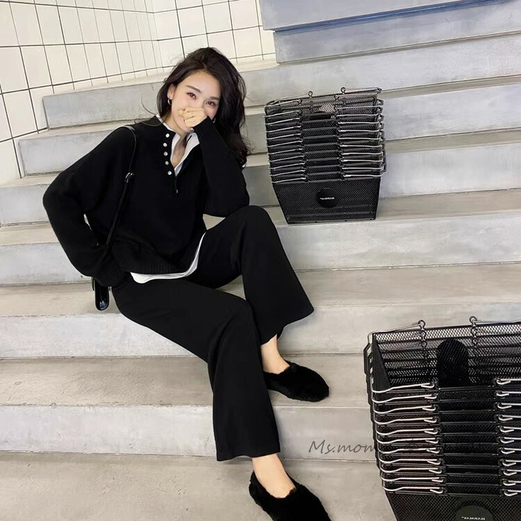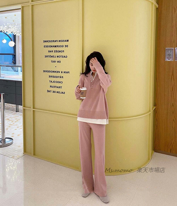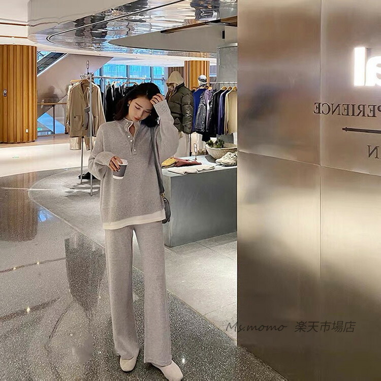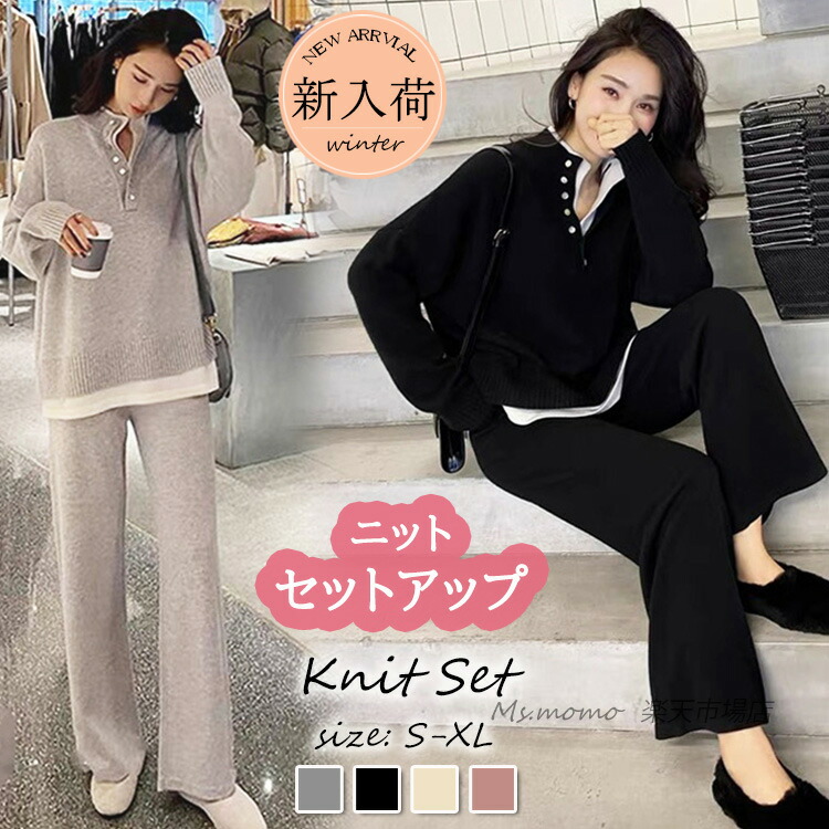 ニットセットアップ レディース 40代 スーツ セットアップ パンツスーツ 通販 ブラック グレー ピンク ベージュ