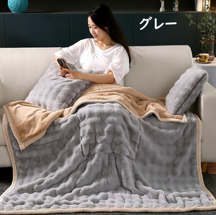 厚手 ブランケット 巻くとクッションに インテリア 寝具 収納 豊富 105x150cm(クッション40*40cm) 150x200cm(クッション50*50cm) カーキー グレー 薄いグリーン 濃いコーヒー ピンク