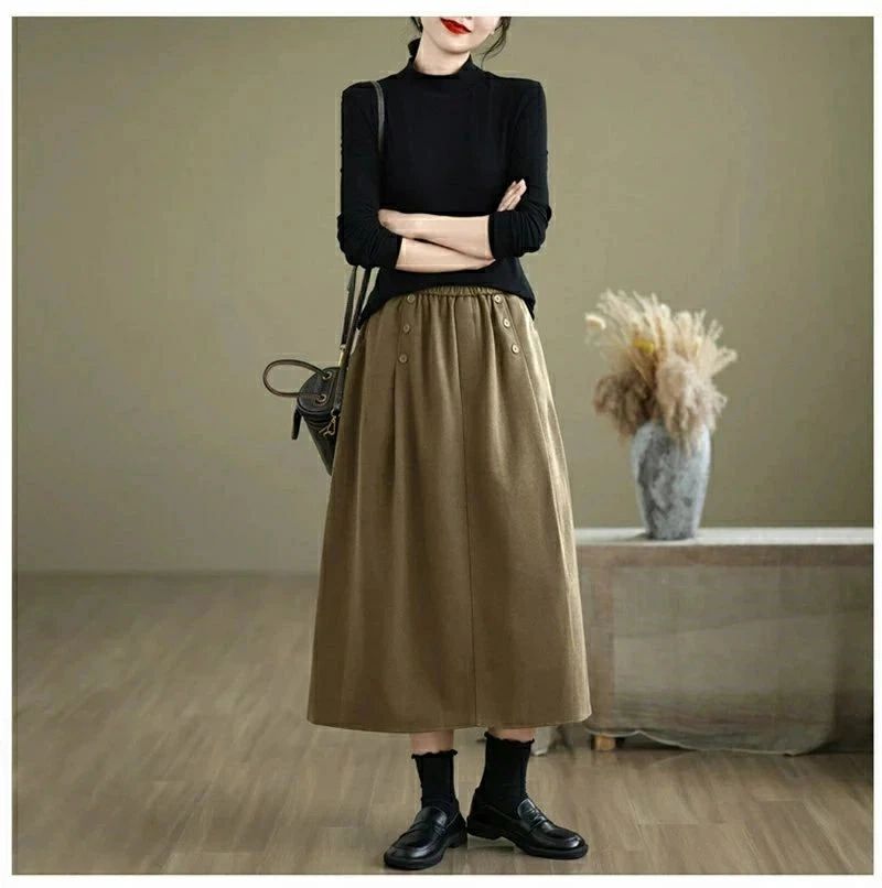 暖かい お洒落 ロング 大きいサイズ ボトムス スカート 通販 ブラック コーヒー グレー ベージュ L XL 2XL