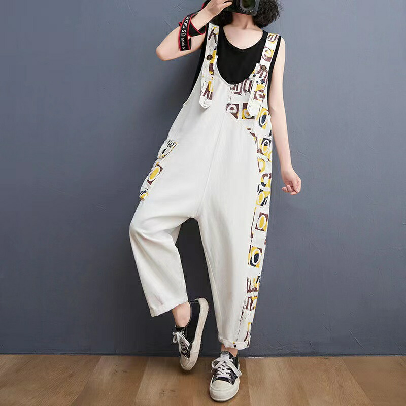 オーバーオール レディース ゆったり ボトムス パンツ 超目玉商品 ホワイト ブラック M L XL 2XL