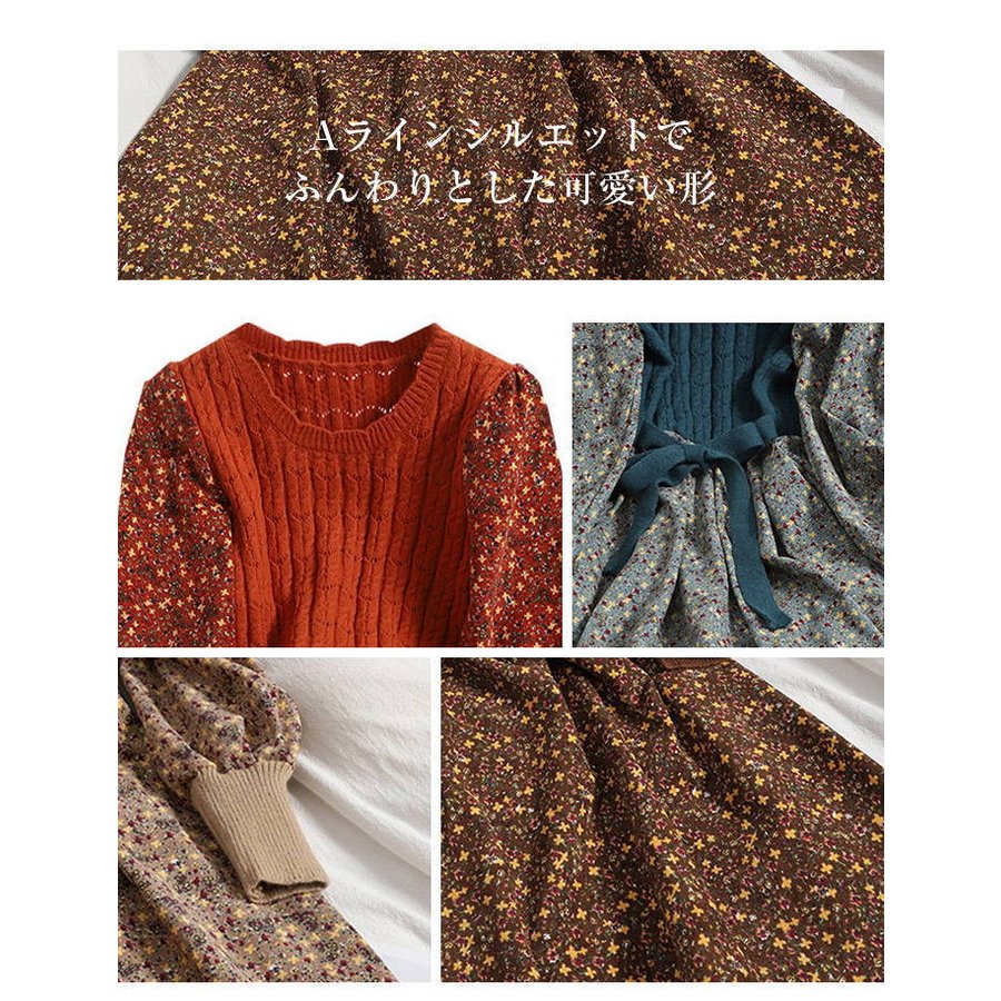 ワンピース 秋 冬 花柄 レディース レディースファッション 新登場! ベージュ ブルー コーヒー色 レッド S M L XL