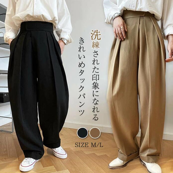 タックワイドパンツ レディース 春夏 ボトムス パンツ 続々登場 ベージュ(秋冬用) ベージュ(春夏用) 黒(秋冬用) 黒(春夏用) ダーク緑 ミントグリーン アイボリー M L XL